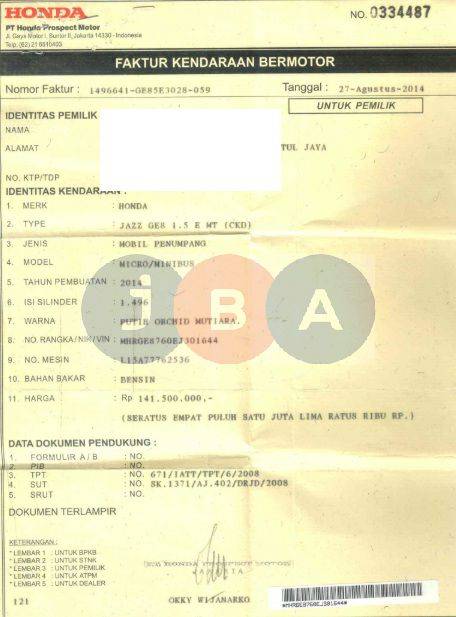 UNIT BLOKIR LEASING // EX GANTI NOPOL//WARNA UNIT DI DOKUMEN PUTIH ORCHID MUTIARA