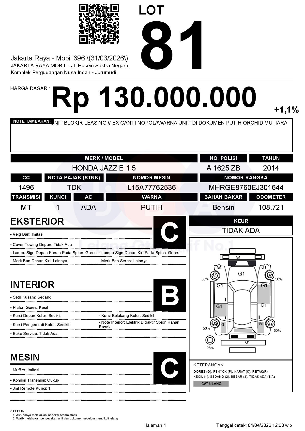 Tanggal Lelang: 02/04/2026 | 14:00 WIB