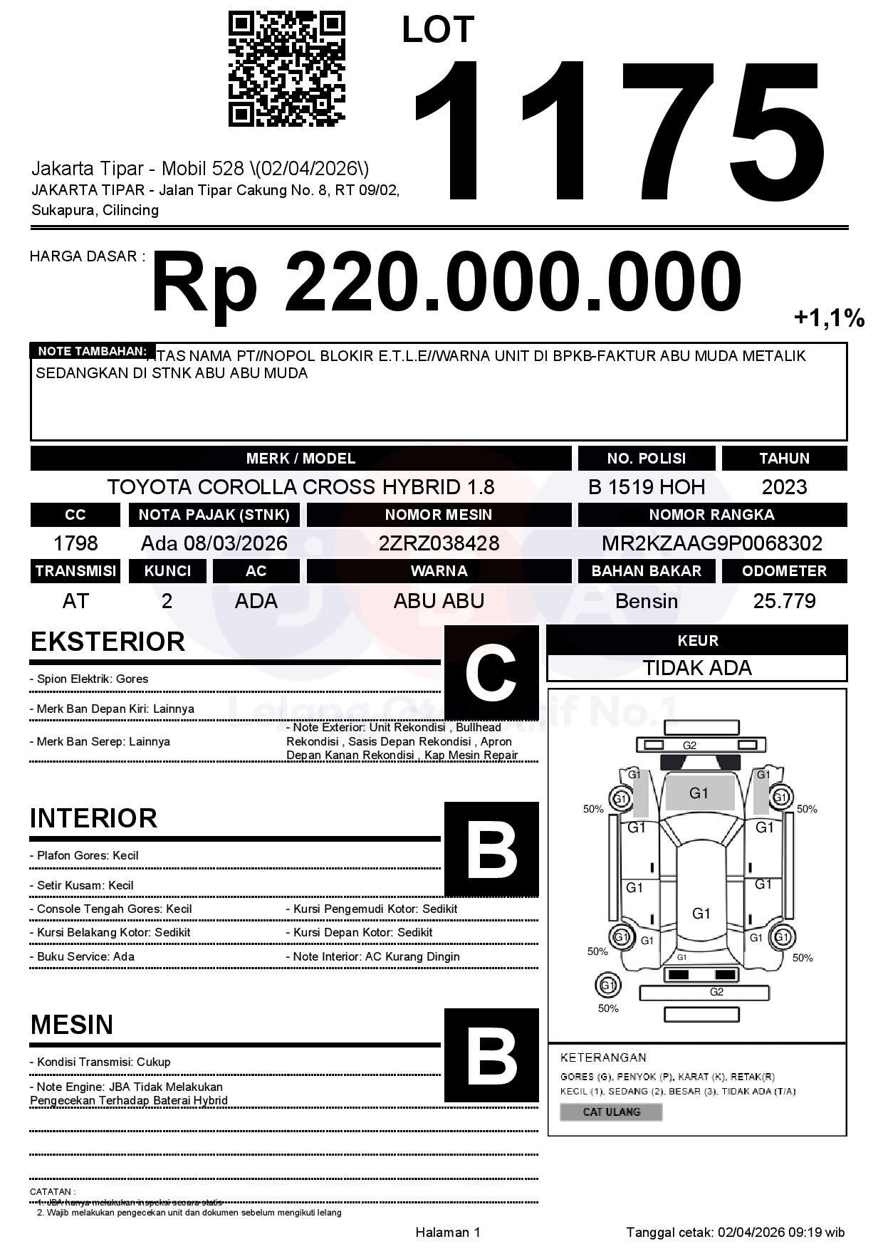 Tanggal Lelang: 02/04/2026 | 14:00 WIB