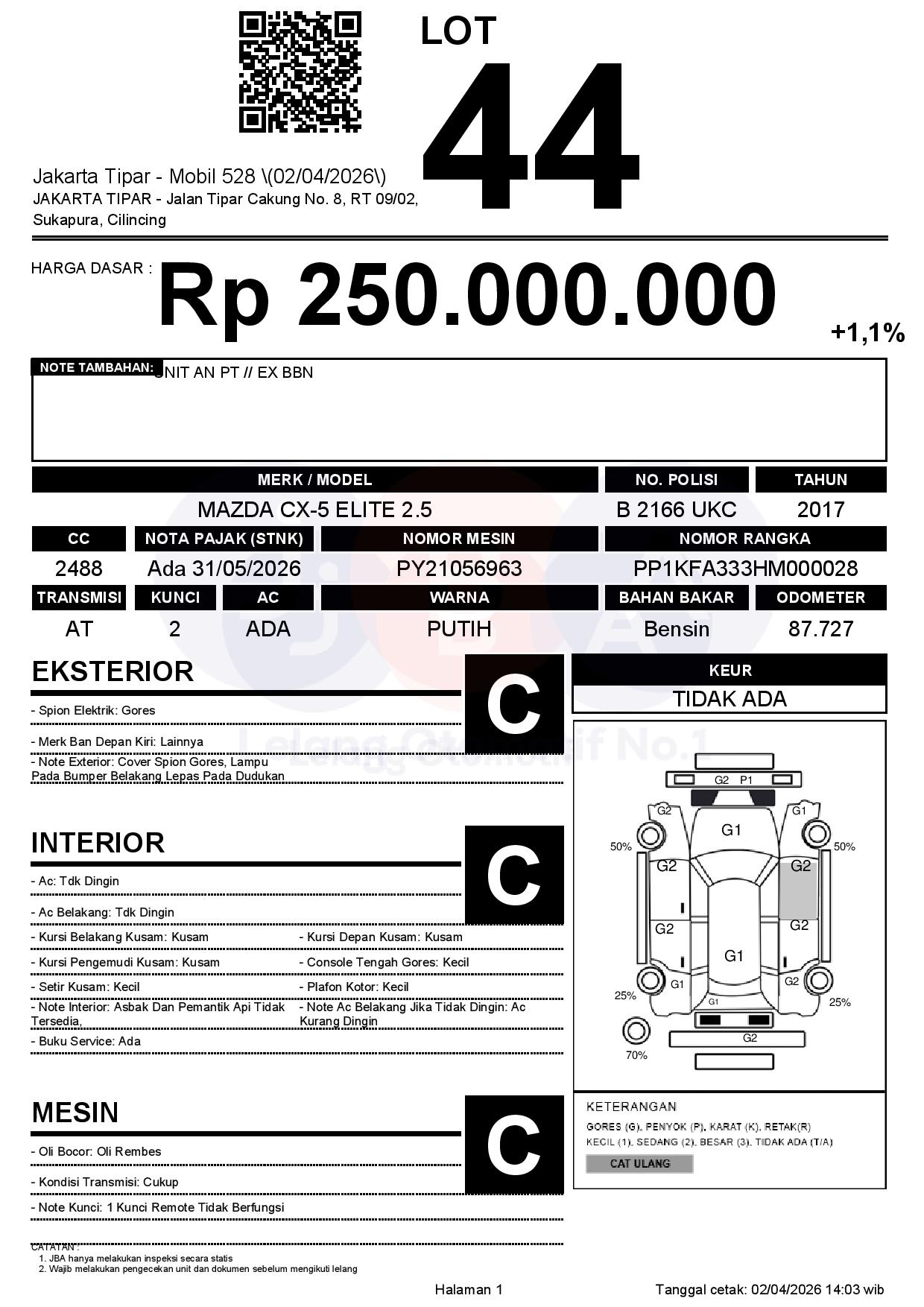 Tanggal Lelang: 02/04/2026 | 13:00 WIB