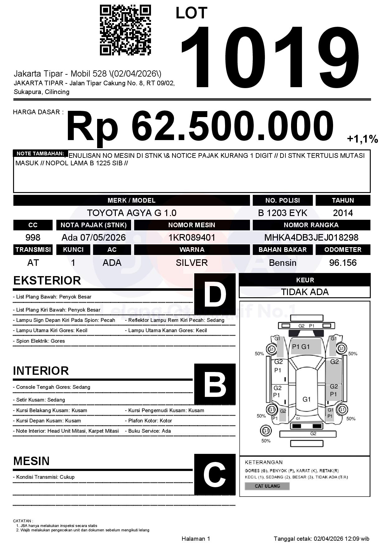 Tanggal Lelang: 02/04/2026 | 14:00 WIB