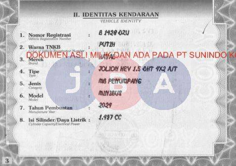 UNIT BERADA DI POOL SELLER // PEMENANG WAJIB KONFIRMASI KE JBA SETELAH PELUNASAN // PENGAMBILAN UNIT H+2 SETELAH PELUNASAN // UNIT TDK DI CHECKLIST // PEMENANG LELANG WAJIB MENANDATANGANI SURAT PERNYATAAN BERMATERAI DI JBA // FOTO NOKA NOSIN TIDAK TERLAMPIR // TYPE UNIT PADA DOKUMEN JOLION HEV 1.5 DHT 4X2 AT //