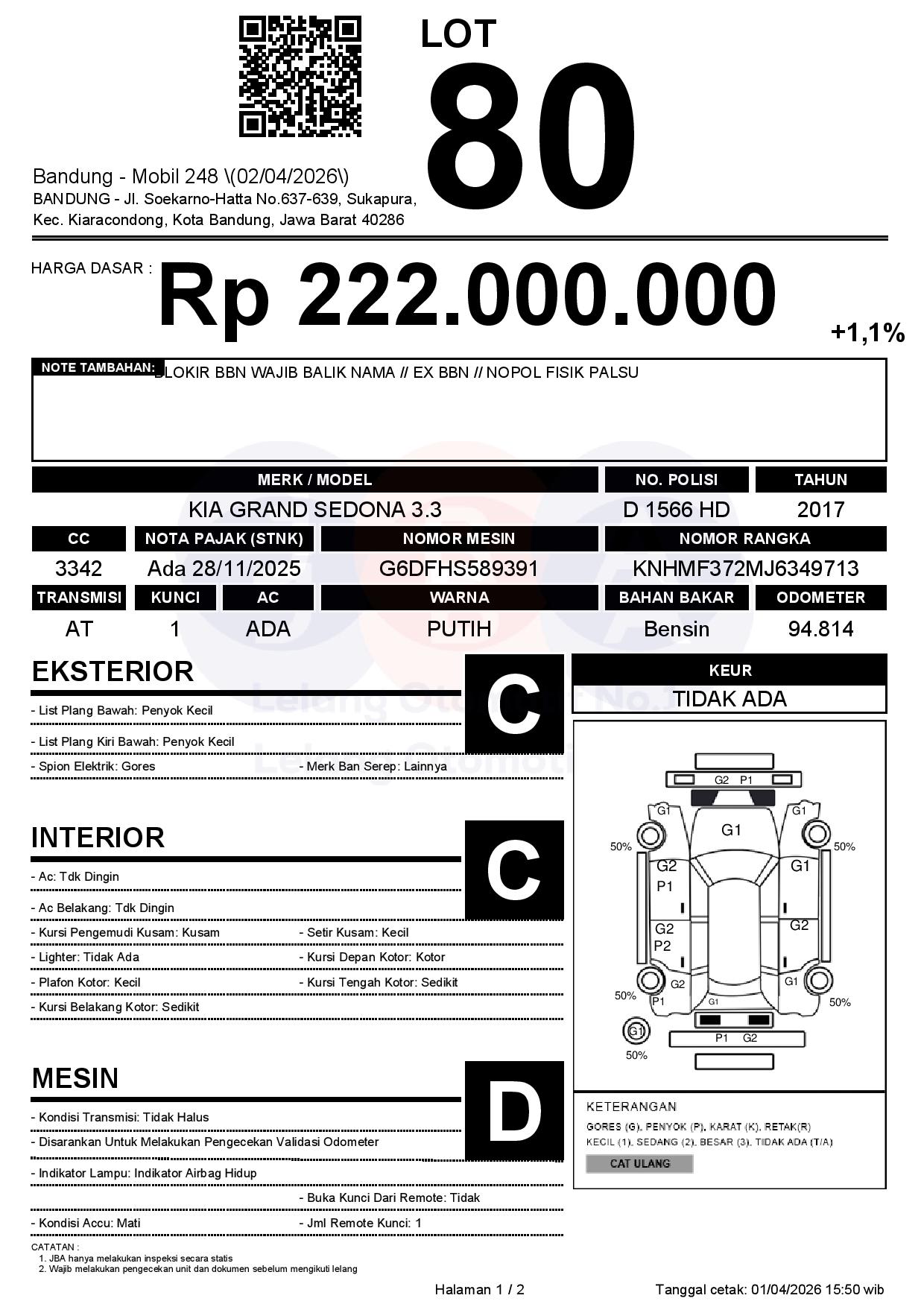Tanggal Lelang: 02/04/2026 | 13:00 WIB
