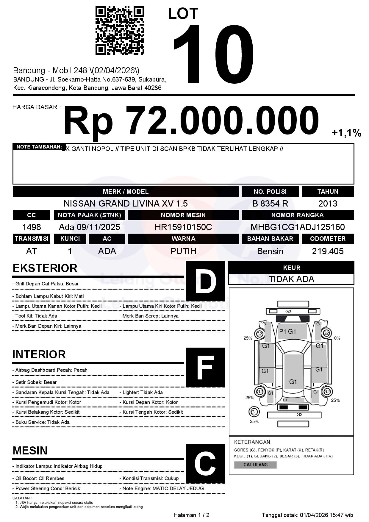 Tanggal Lelang: 02/04/2026 | 13:00 WIB