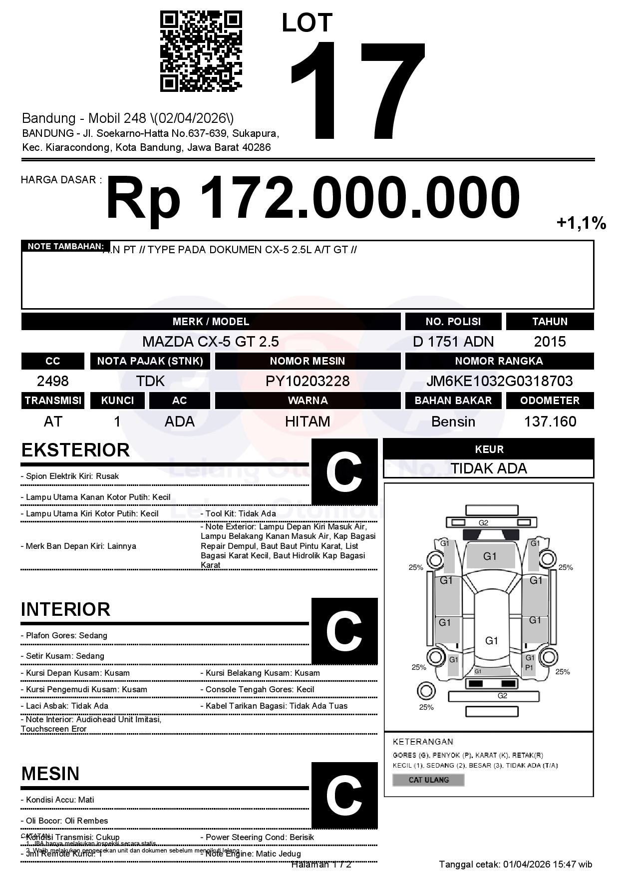 A.N PT // TYPE PADA DOKUMEN CX-5 2.5L A/T GT //