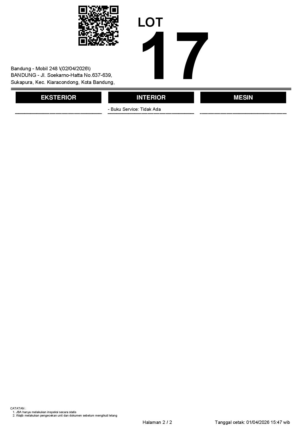 2. Peserta lelang wajib cek unit & dokumen