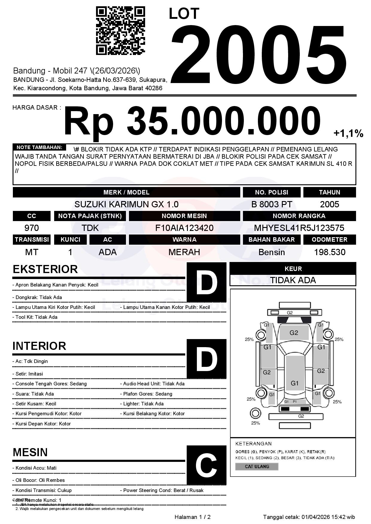 # BLOKIR TIDAK ADA KTP // TERDAPAT INDIKASI PENGGELAPAN // PEMENANG LELANG WAJIB TANDA TANGAN SURAT PERNYATAAN BERMATERAI DI JBA // BLOKIR POLISI PADA CEK SAMSAT // NOPOL FISIK BERBEDA/PALSU // WARNA PADA DOK COKLAT MET // TIPE PADA CEK SAMSAT KARIMUN SL 410 R //