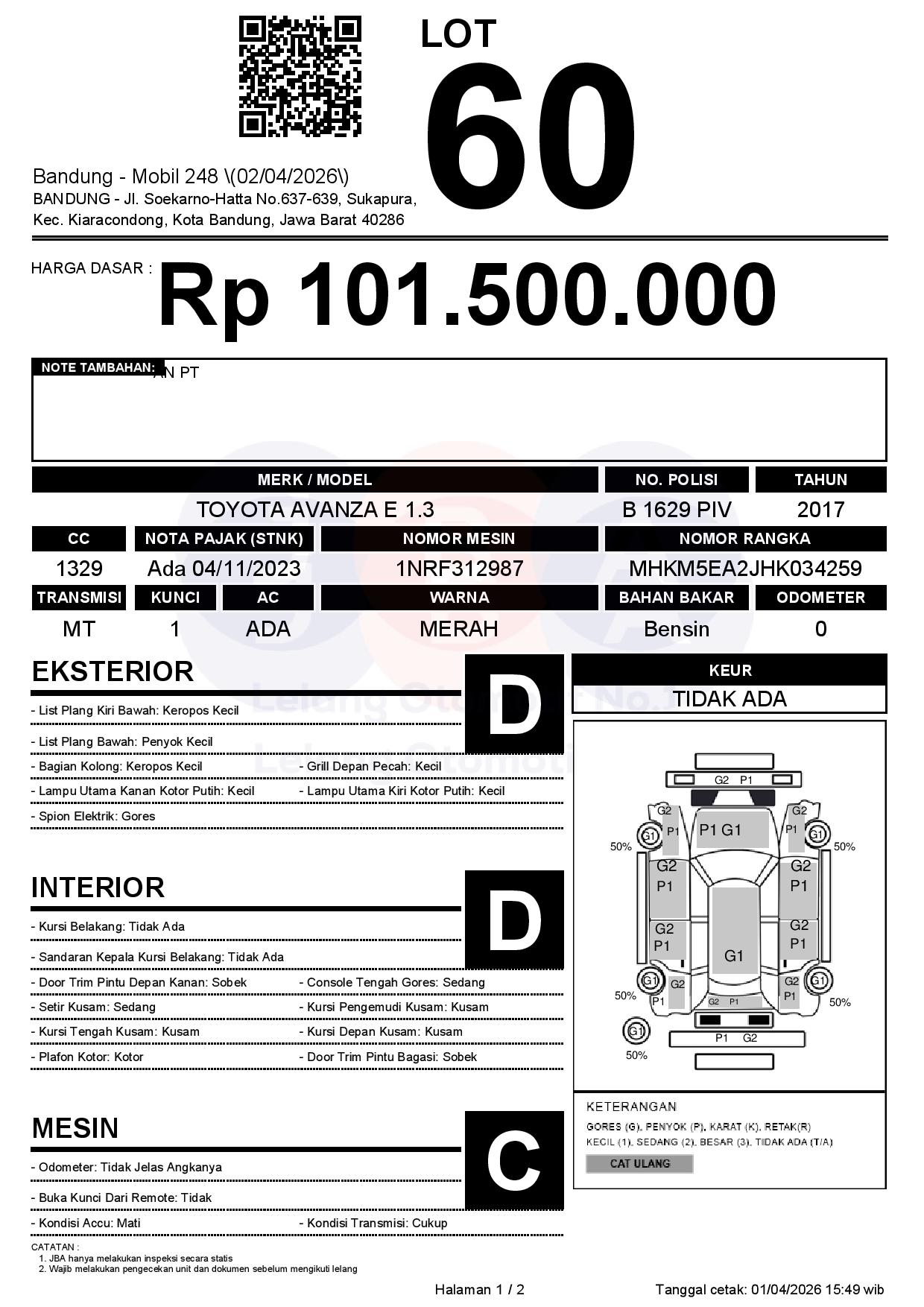 Tanggal Lelang: 02/04/2026 | 13:00 WIB