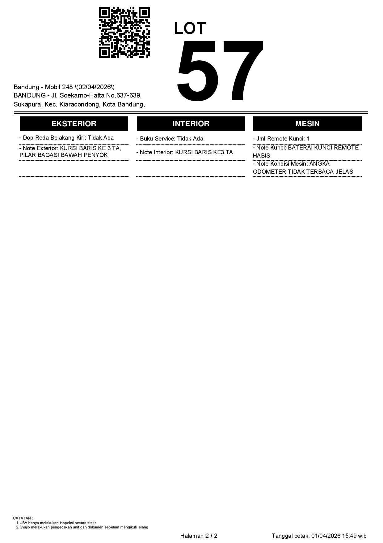 1. Peserta lelang wajib cek unit & dokumen