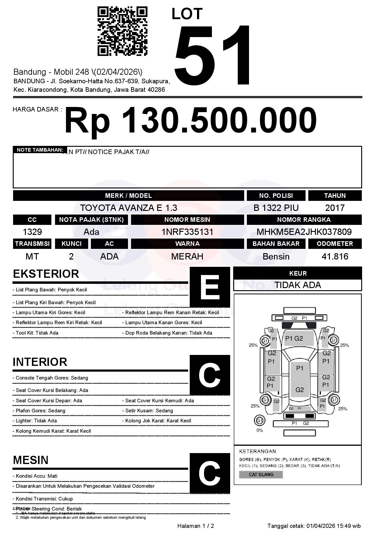 Tanggal Lelang: 02/04/2026 | 13:00 WIB