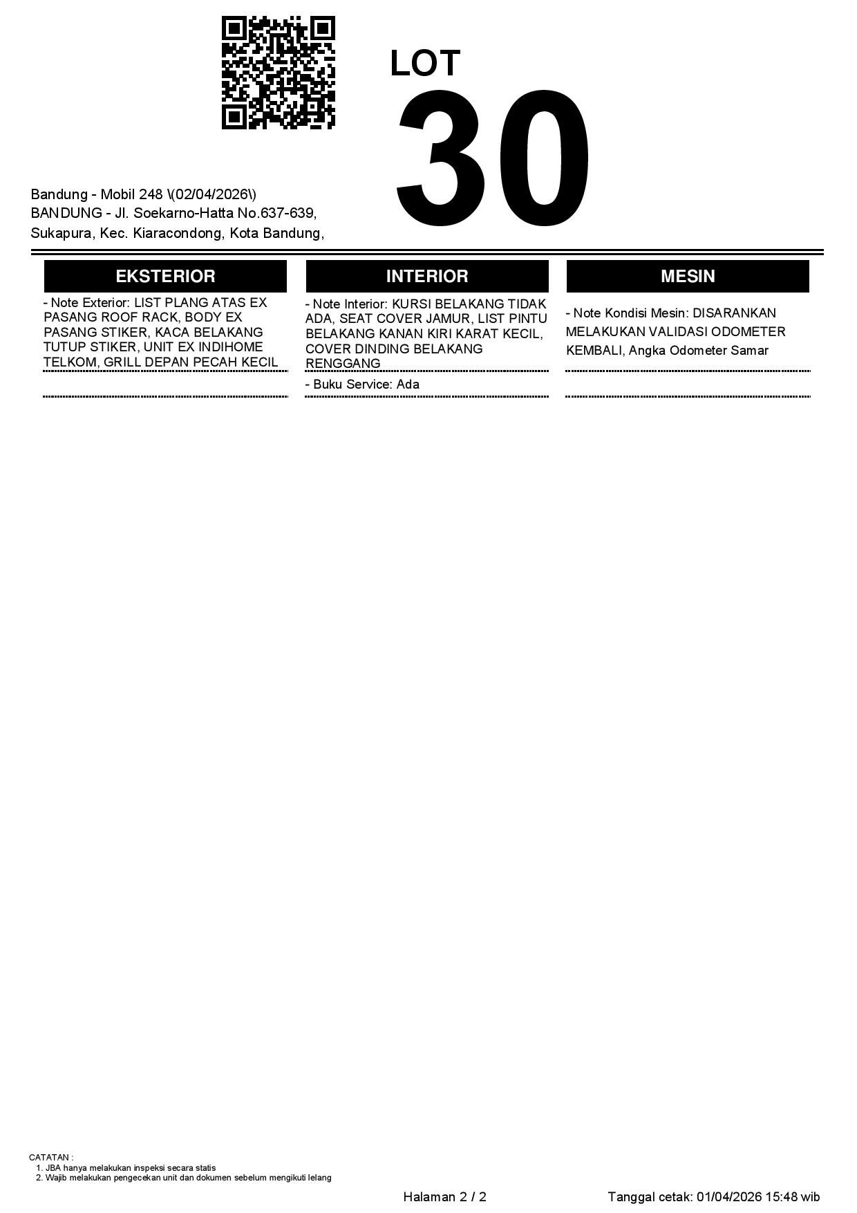 1. Peserta lelang wajib cek unit & dokumen
