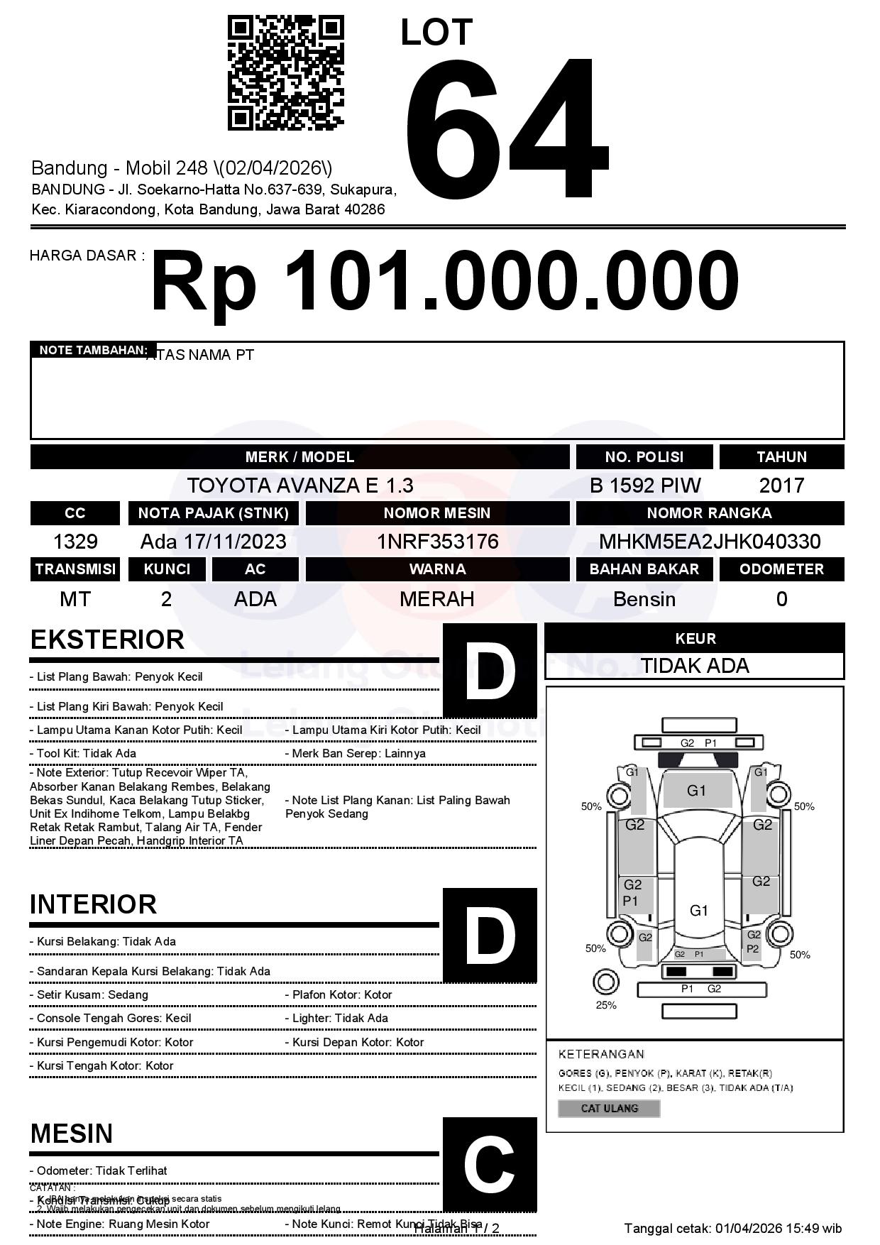 Tanggal Lelang: 02/04/2026 | 13:00 WIB