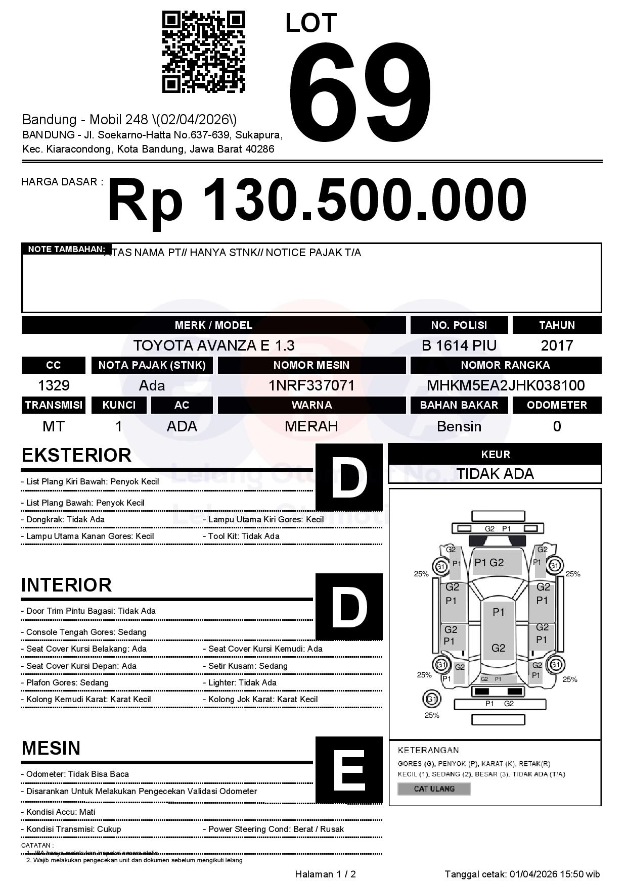 Tanggal Lelang: 02/04/2026 | 13:00 WIB