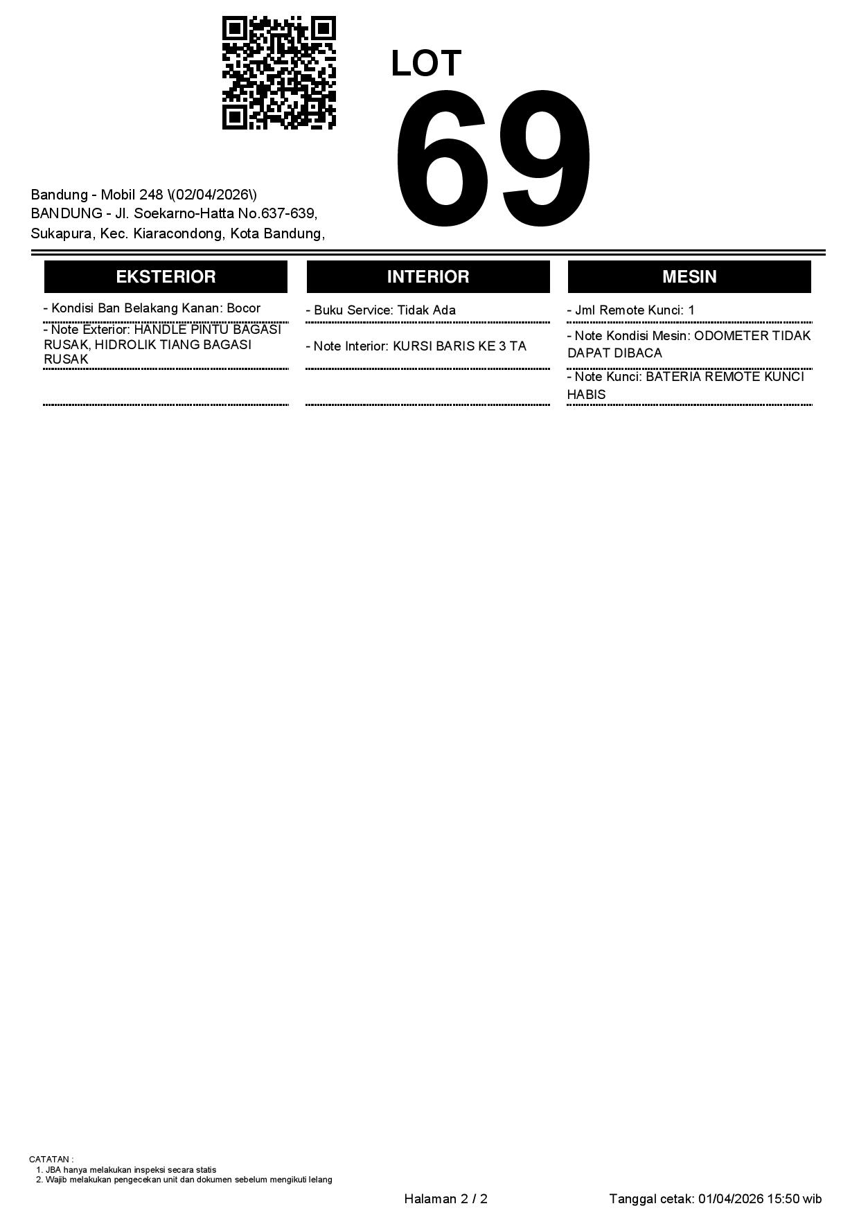 1. Peserta lelang wajib cek unit & dokumen