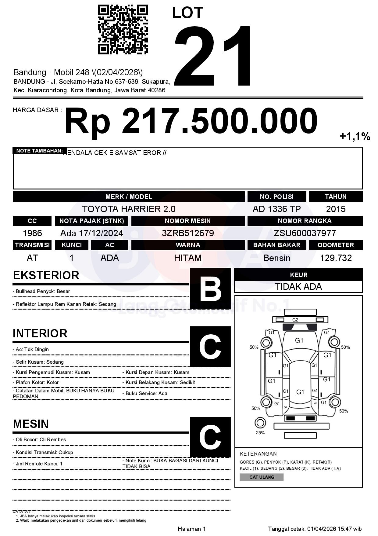 Tanggal Lelang: 02/04/2026 | 13:00 WIB