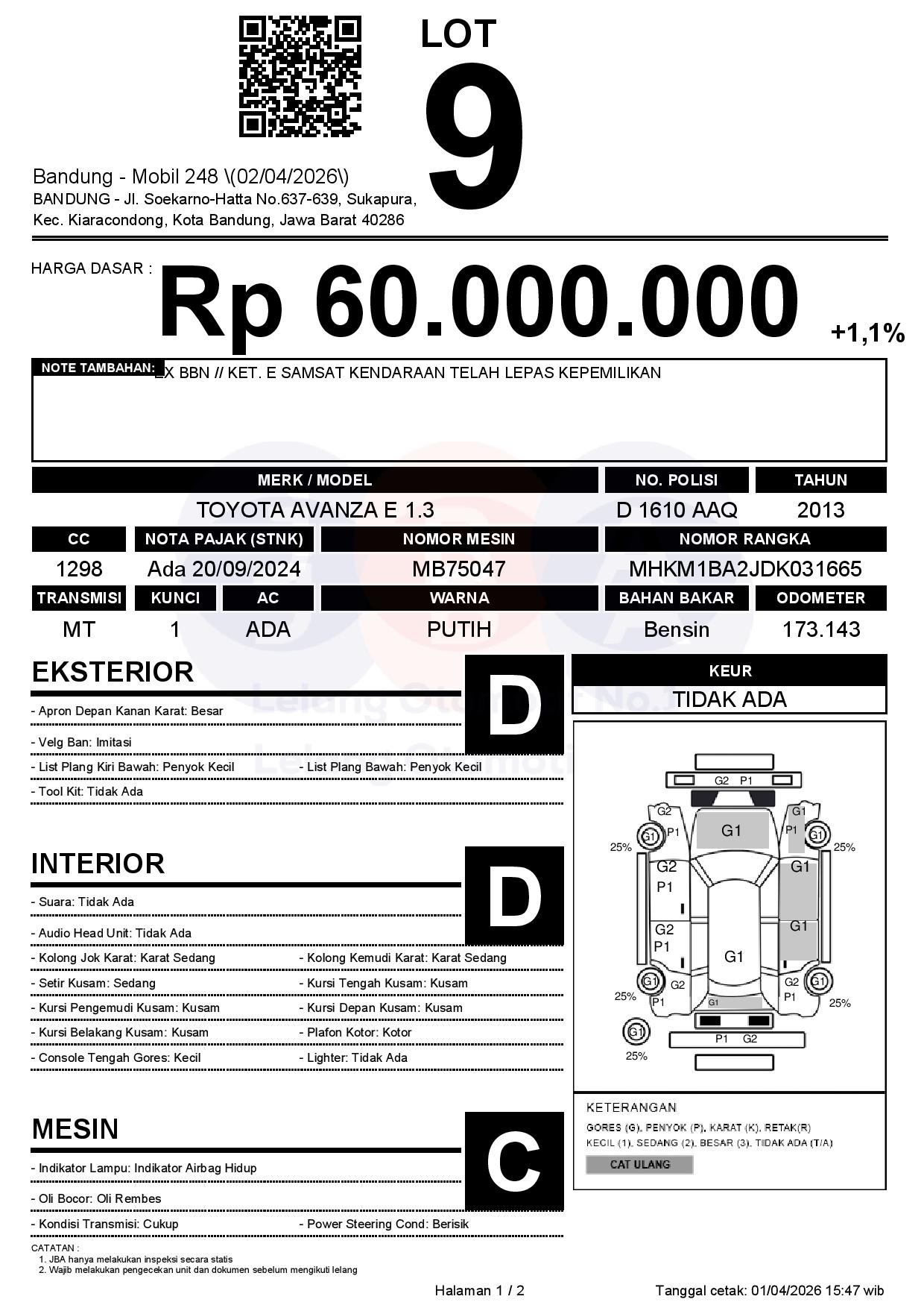 Tanggal Lelang: 02/04/2026 | 13:00 WIB