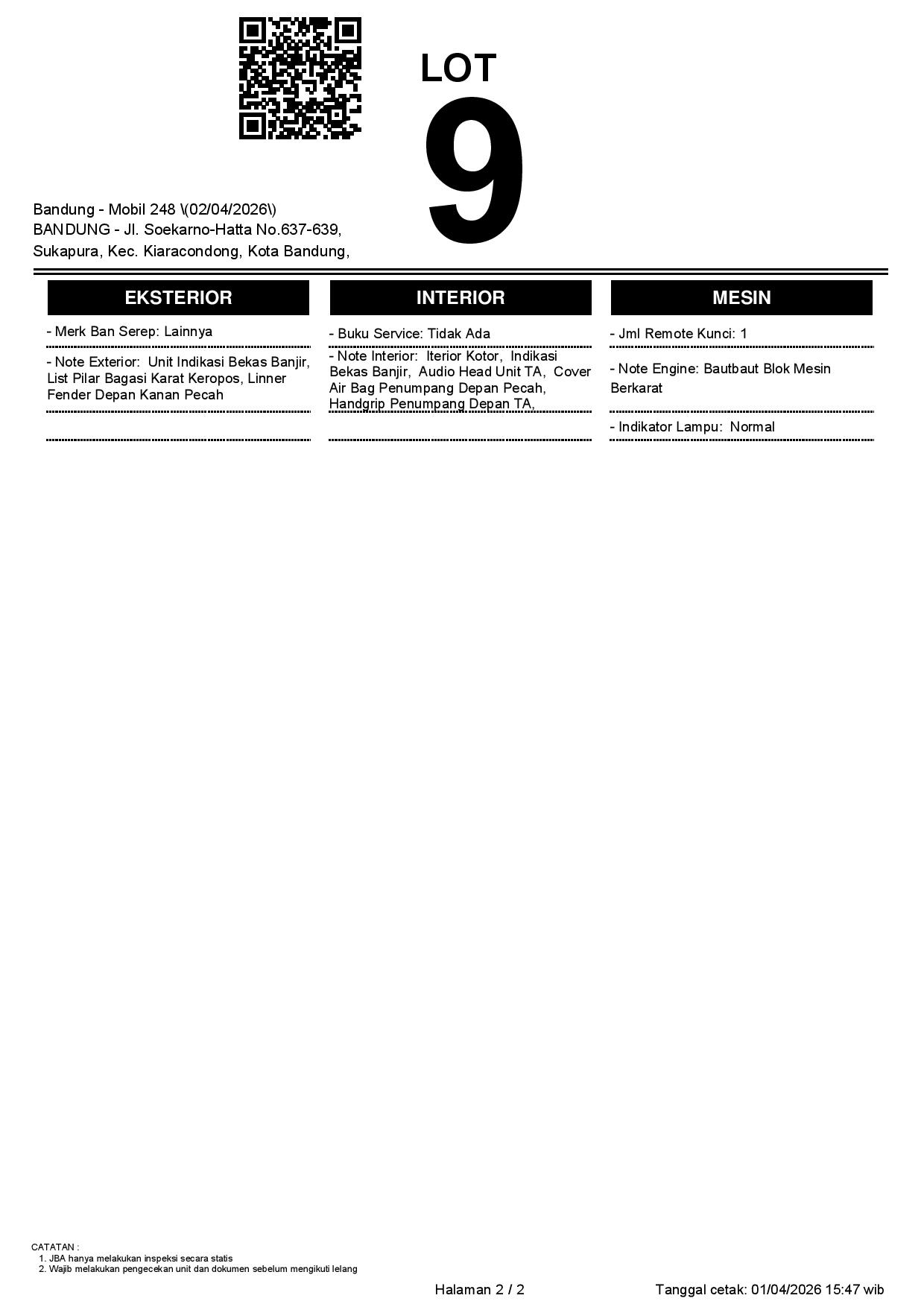 2. Peserta lelang wajib cek unit & dokumen