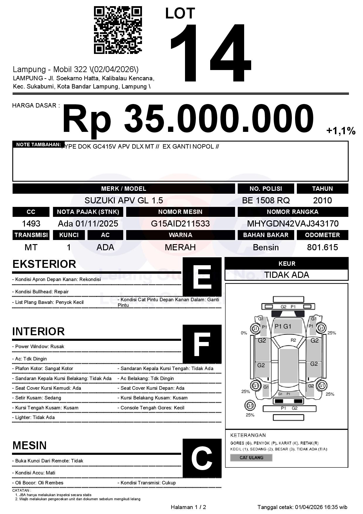 Tanggal Lelang: 02/04/2026 | 13:00 WIB