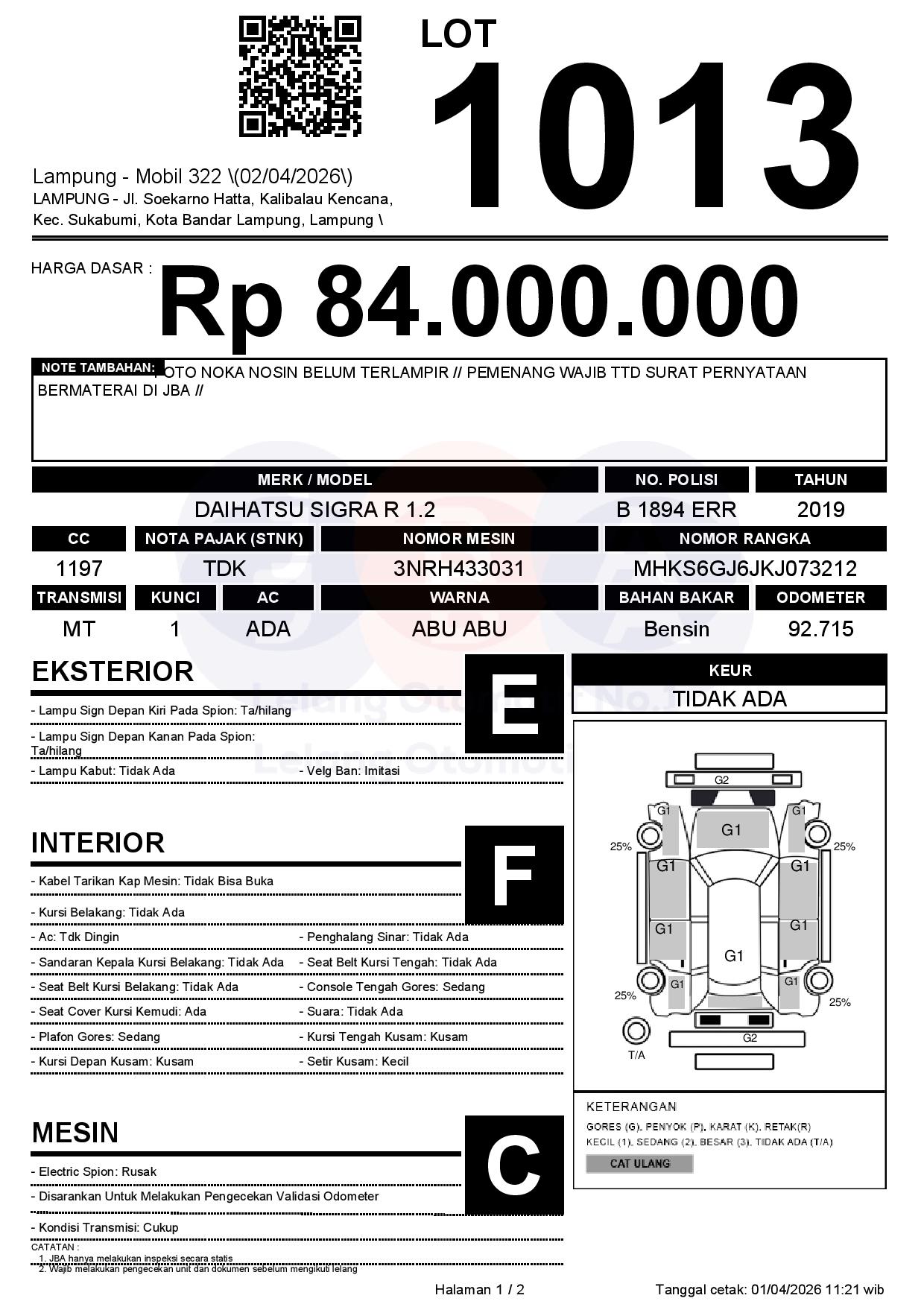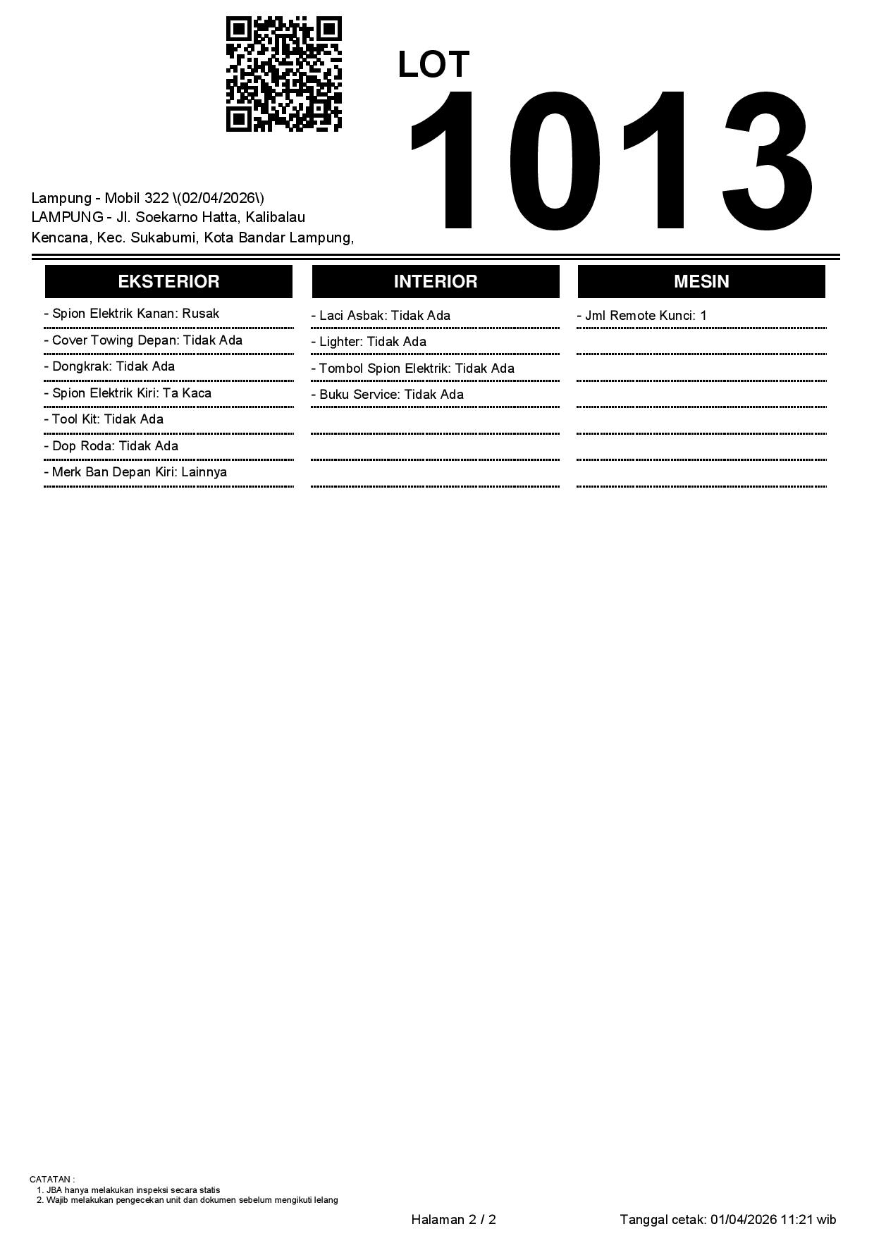 Tanggal Lelang: 02/04/2026 | 13:00 WIB
