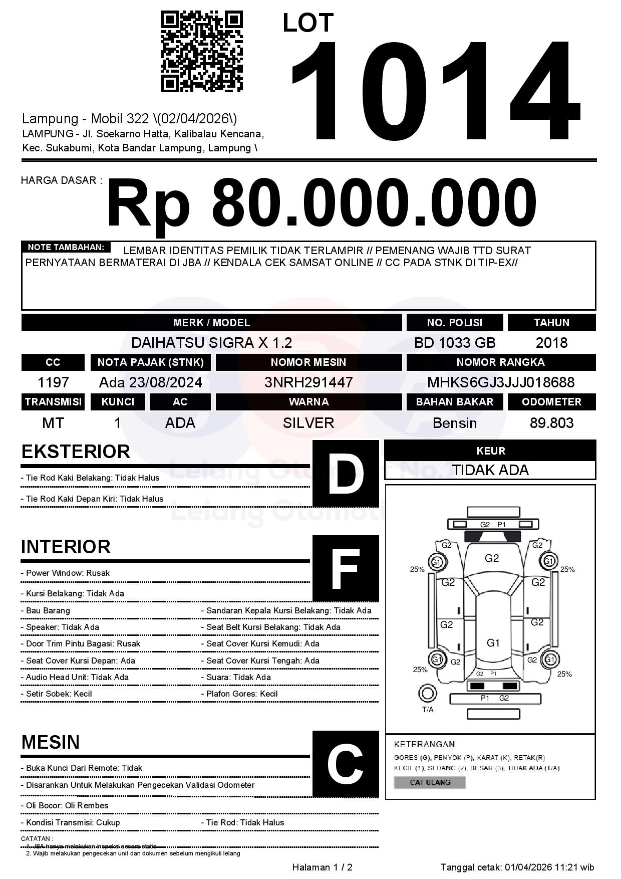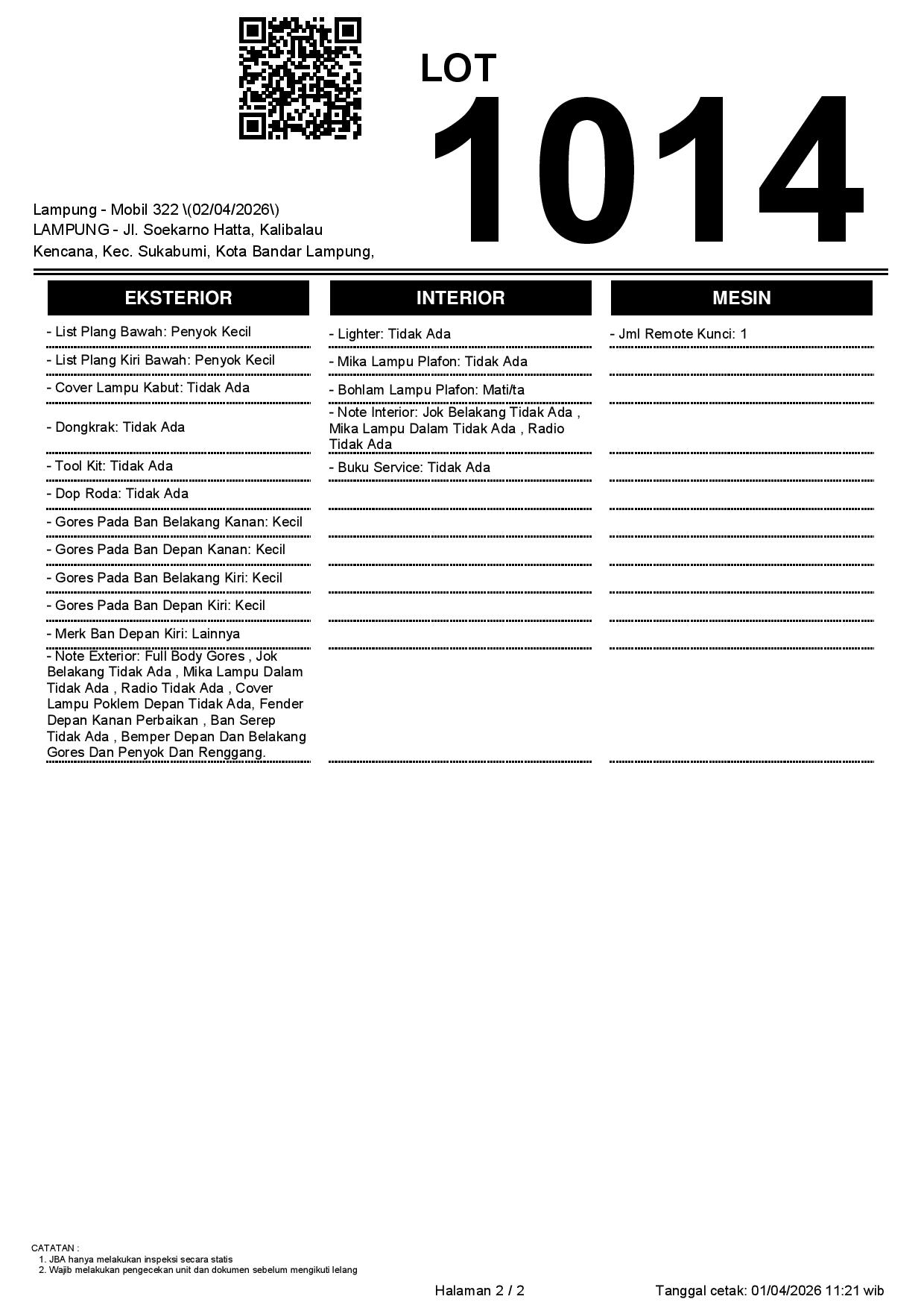 Tanggal Lelang: 02/04/2026 | 13:00 WIB
