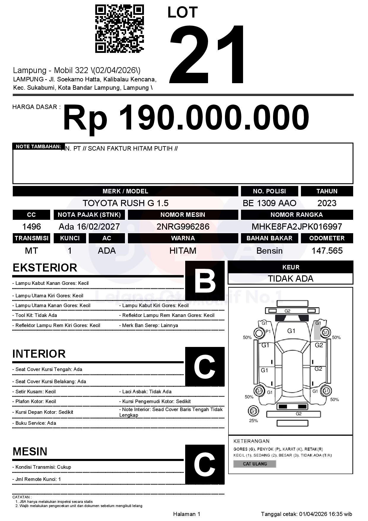 1. Peserta lelang wajib cek unit & dokumen