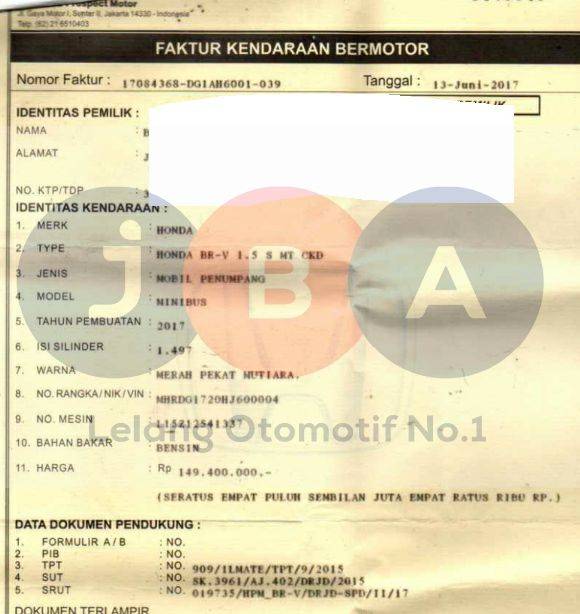 BLOKIR BBN WAJIB BALIK NAMA // TIPE DIDOKUMEN: BR-V 1.5 S MT CKD