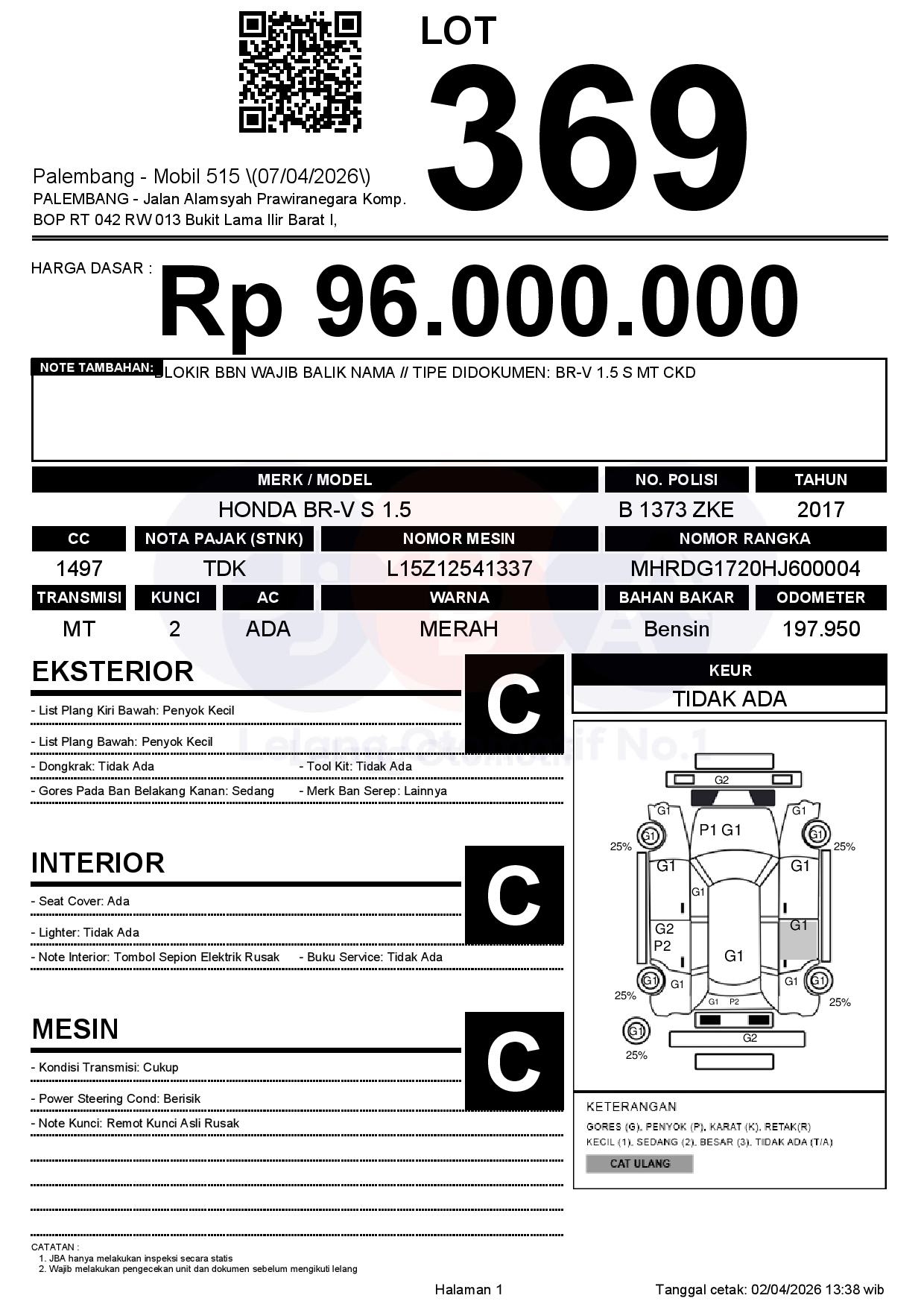 Tanggal Lelang: 02/04/2026 | 13:00 WIB