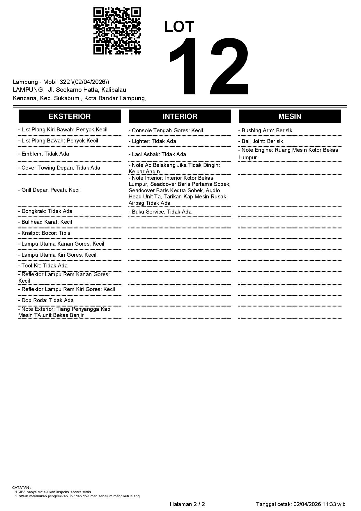 Tanggal Lelang: 02/04/2026 | 13:00 WIB