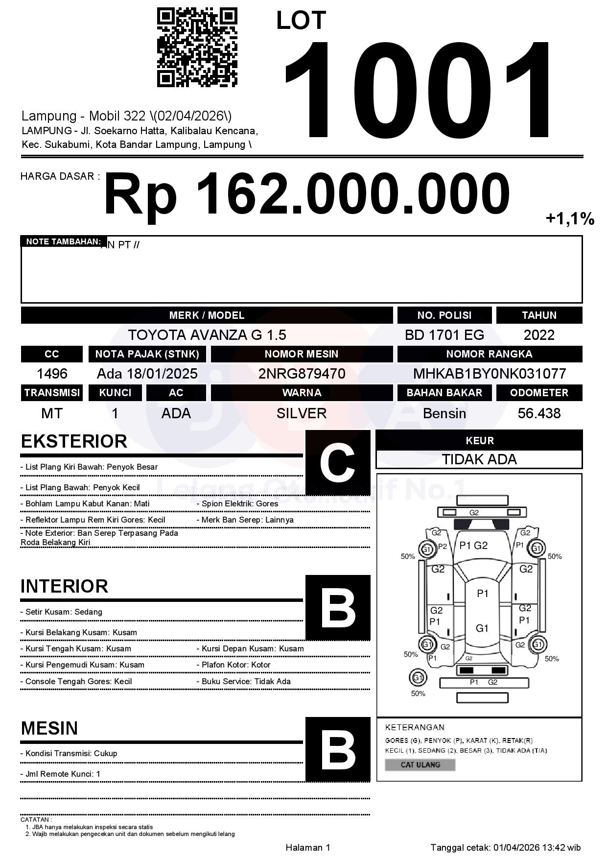 Tanggal Lelang: 02/04/2026 | 13:00 WIB