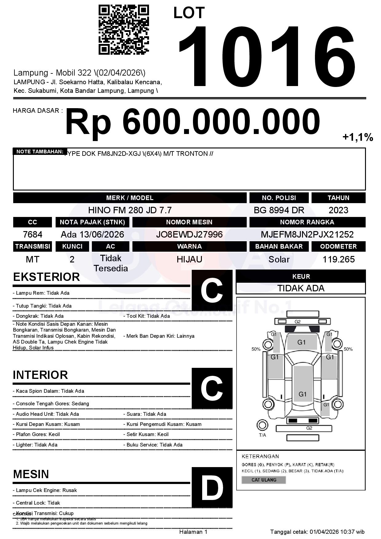 Tanggal Lelang: 02/04/2026 | 13:00 WIB