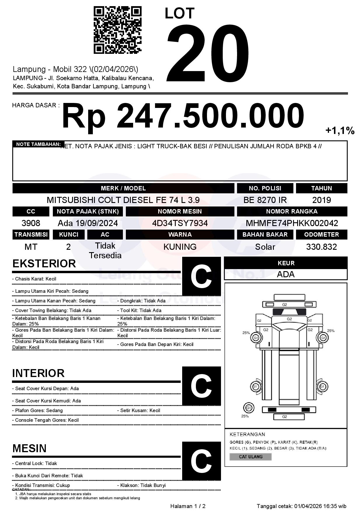 KET. NOTA PAJAK JENIS : LIGHT TRUCK-BAK BESI // PENULISAN JUMLAH RODA BPKB 4 //