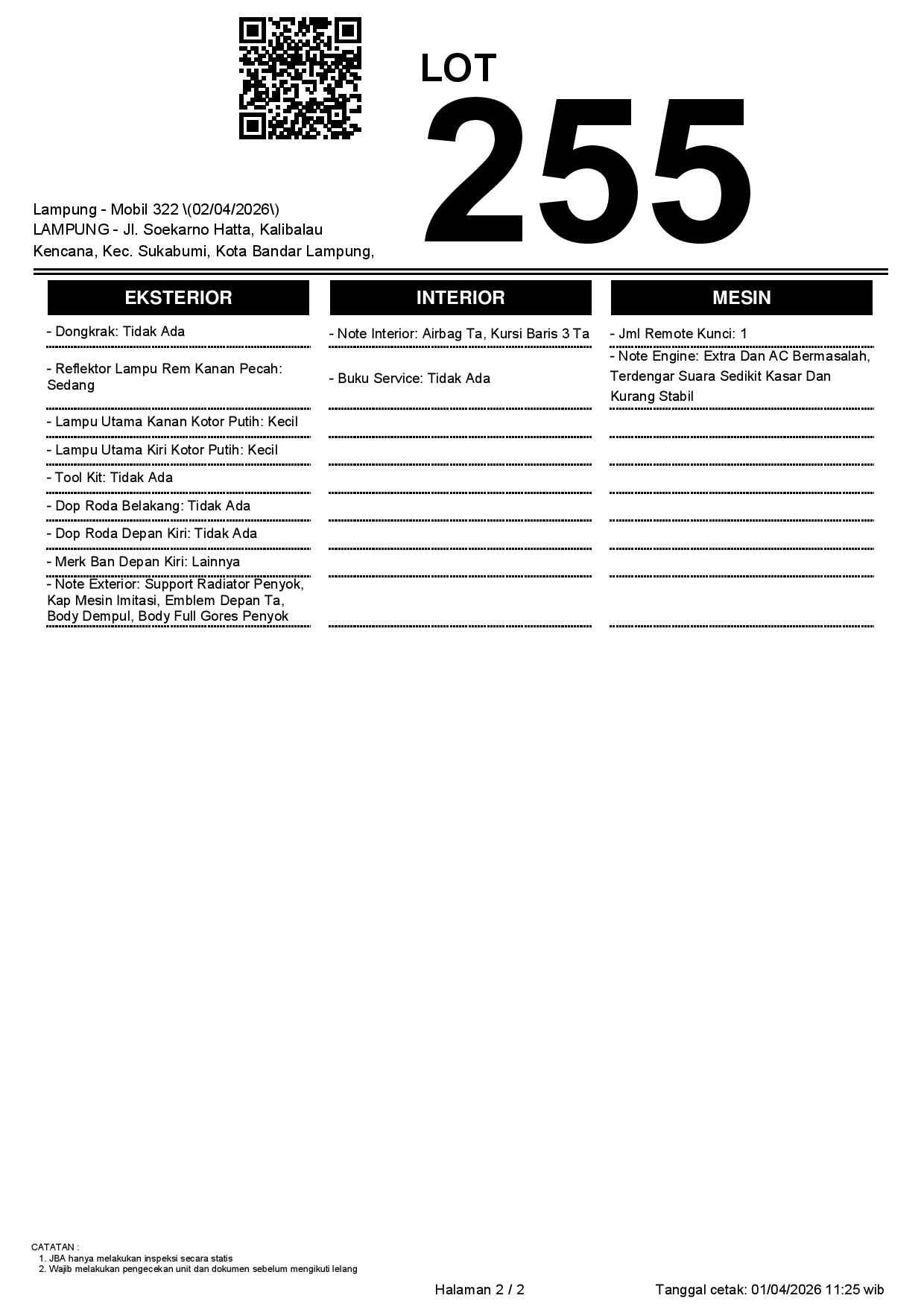 Tanggal Lelang: 02/04/2026 | 13:00 WIB