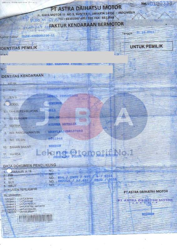 EX GANTI NOPOL // EX BBN // TYPE UNIT PADA DOKUMEN F 600 RV -GMDFJJ (XENIA VVTI-1000 CC)