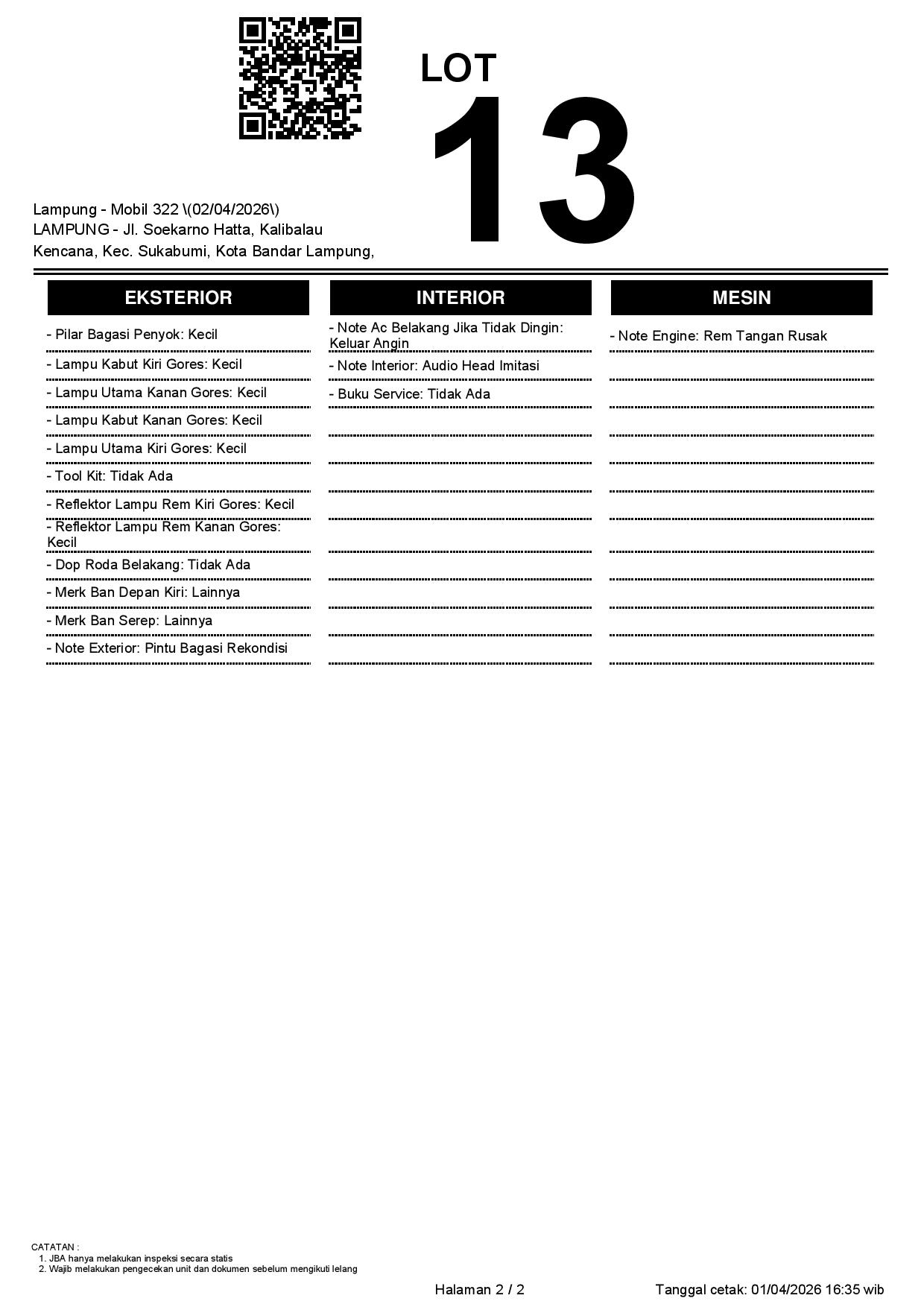 Tanggal Lelang: 02/04/2026 | 13:00 WIB