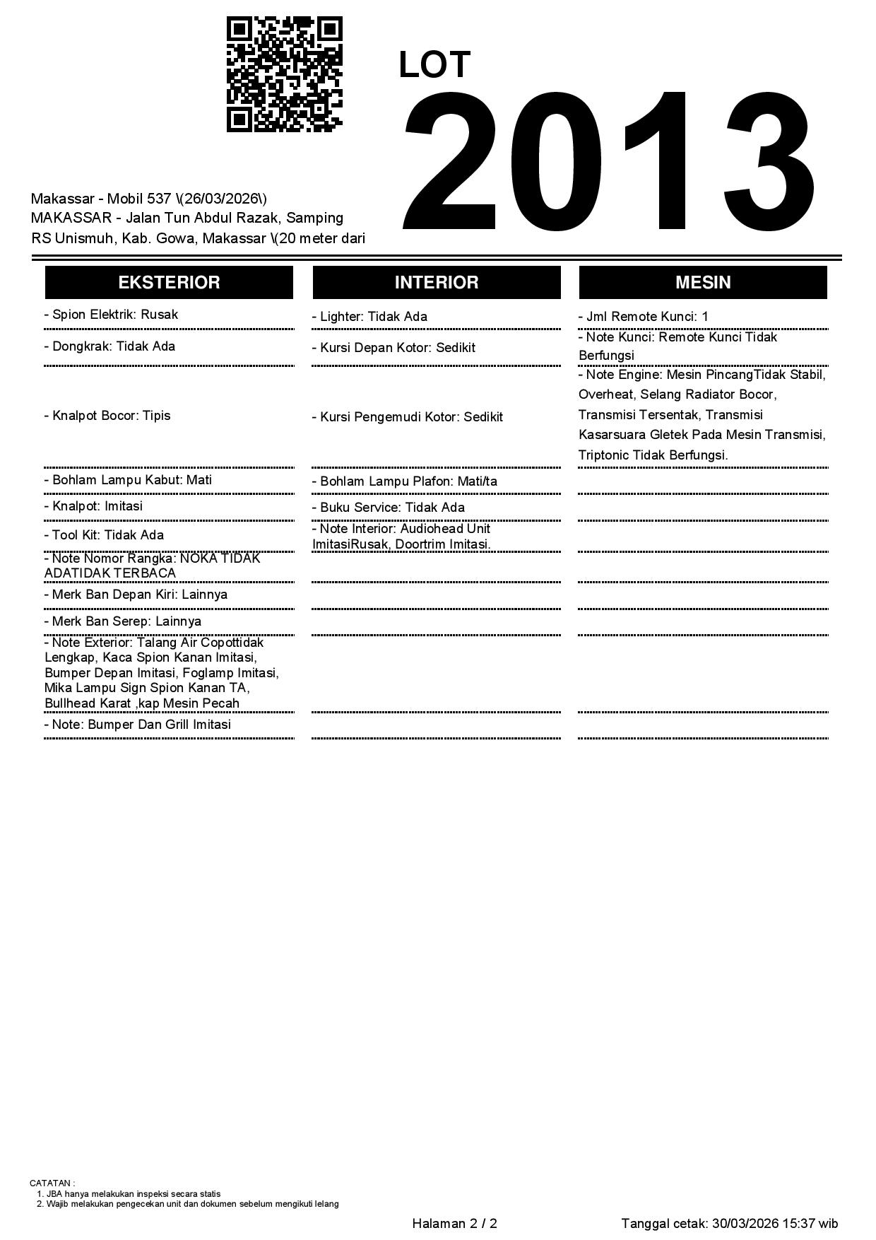 2. Peserta lelang wajib cek unit & dokumen