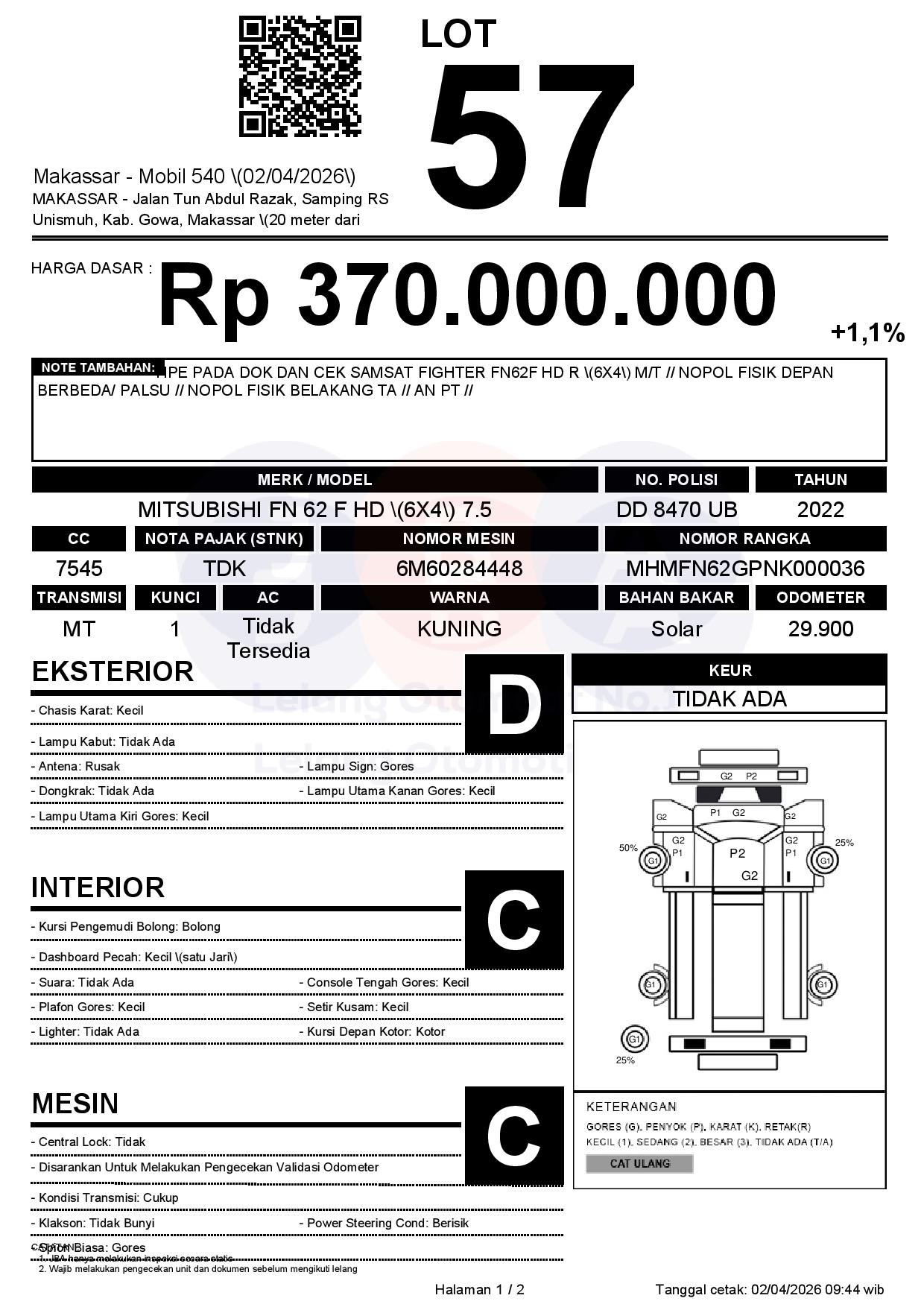 TIPE PADA DOK DAN CEK SAMSAT FIGHTER FN62F HD R (6X4) M/T // NOPOL FISIK DEPAN BERBEDA/ PALSU // NOPOL FISIK BELAKANG TA // AN PT //