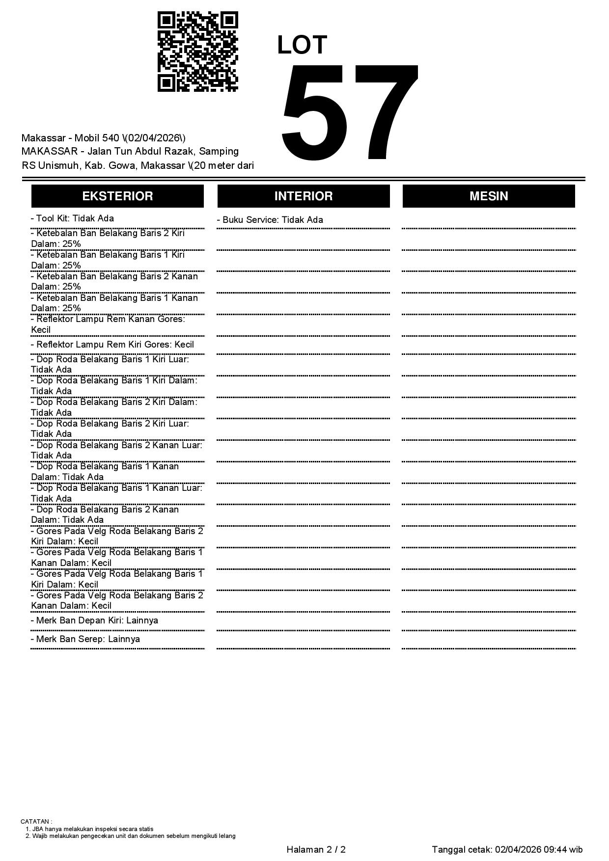 2. Peserta lelang wajib cek unit & dokumen