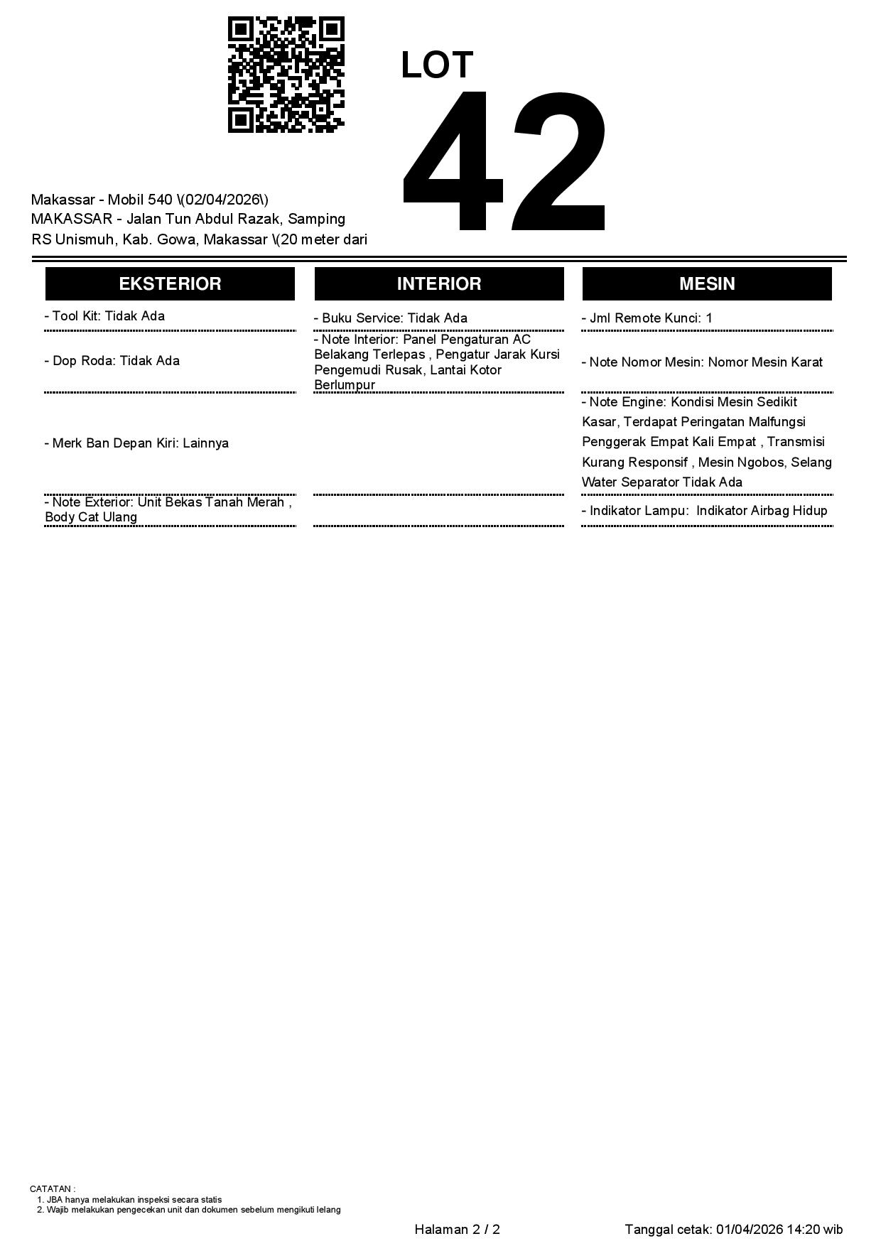 1. Peserta lelang wajib cek unit & dokumen