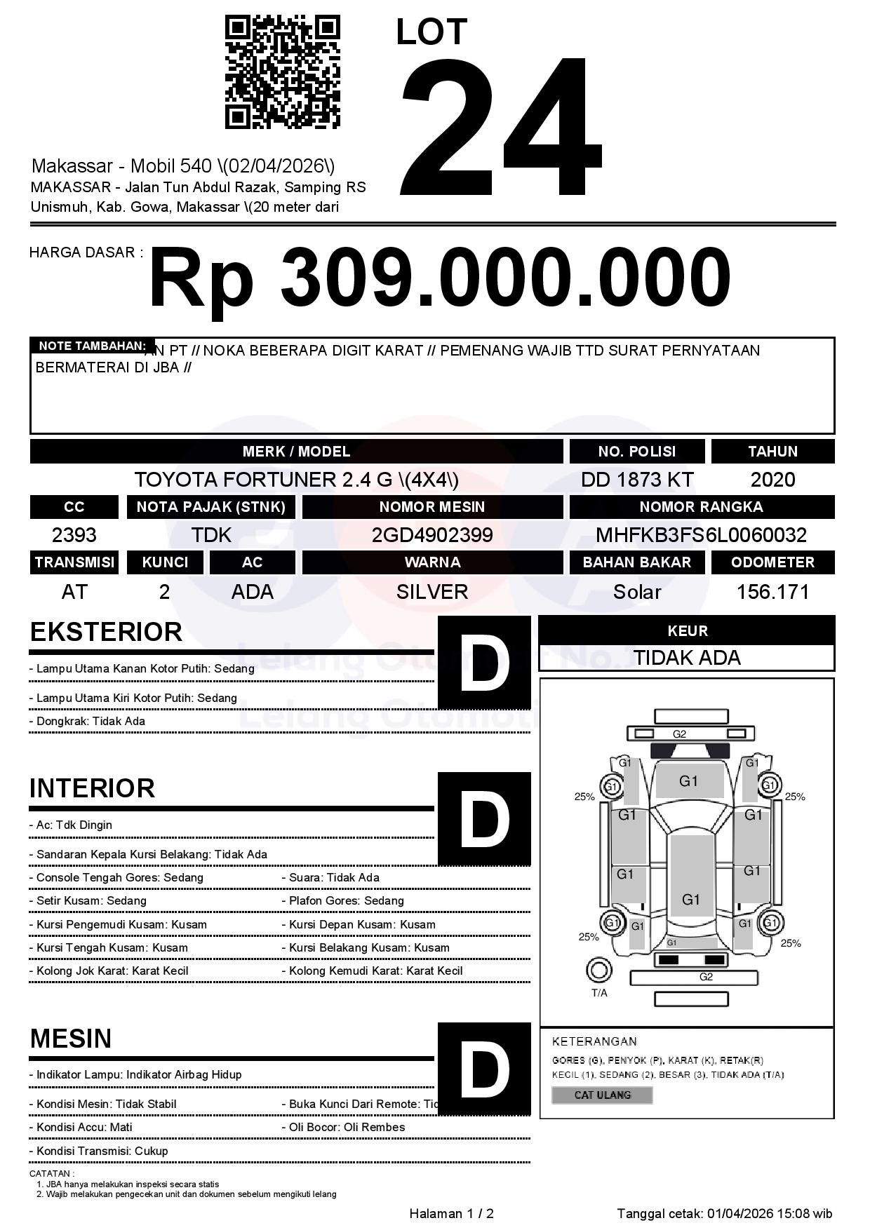 Tanggal Lelang: 02/04/2026 | 13:00 WITA