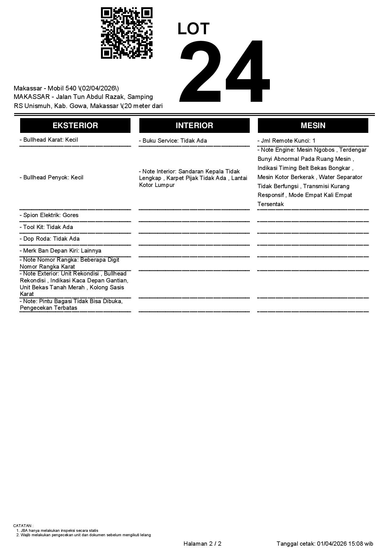 1. Peserta lelang wajib cek unit & dokumen