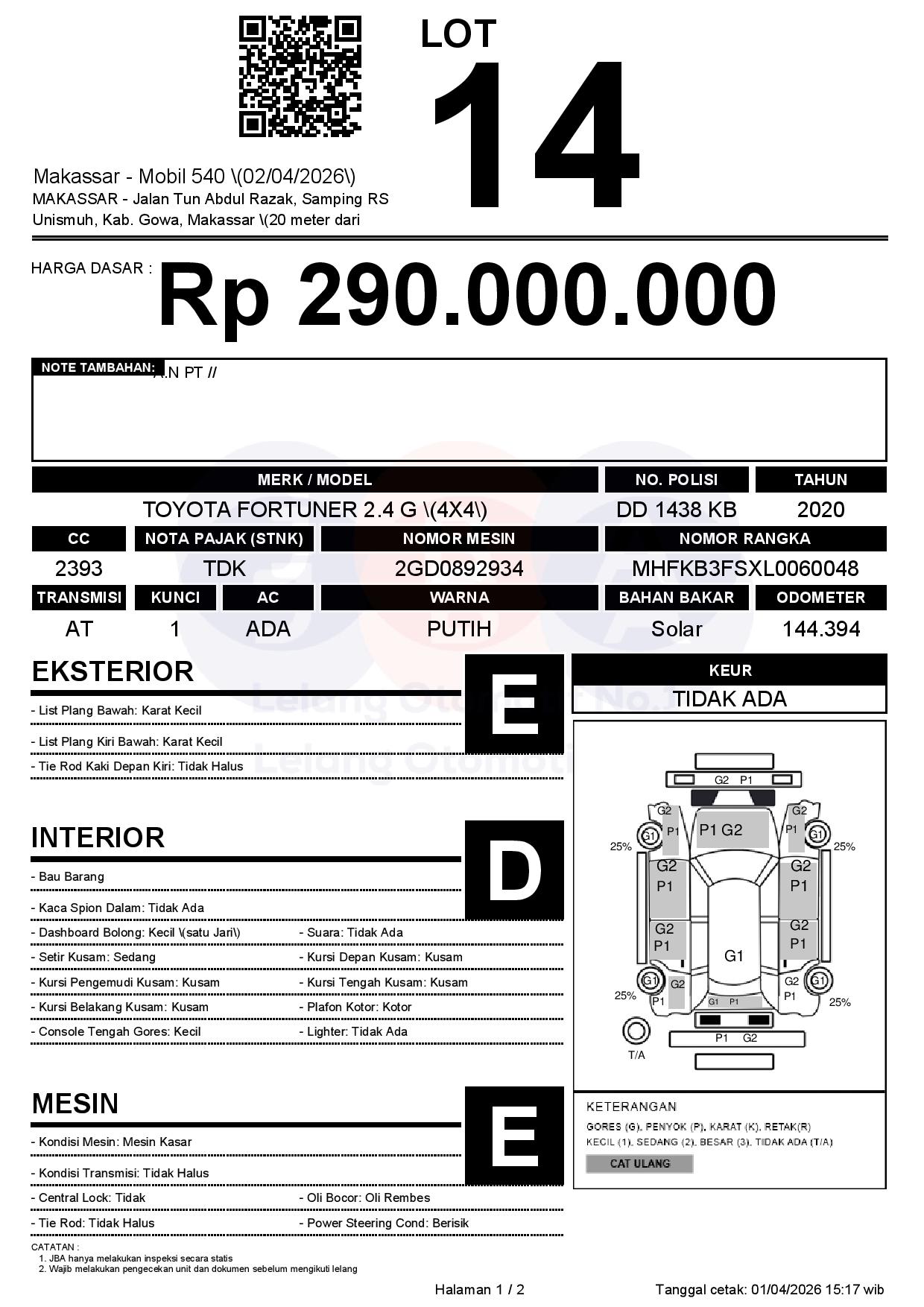 Tanggal Lelang: 02/04/2026 | 13:00 WITA