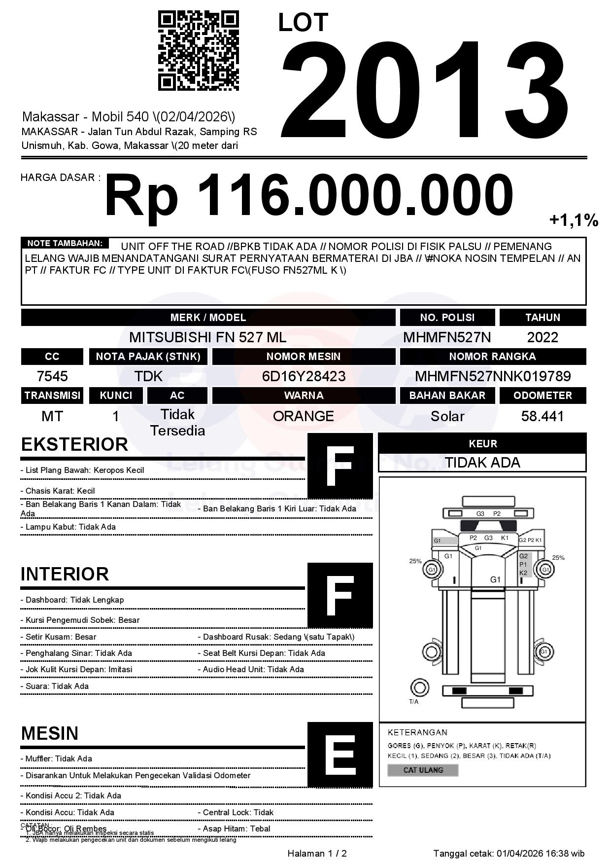 Tanggal Lelang: 02/04/2026 | 14:00 WITA