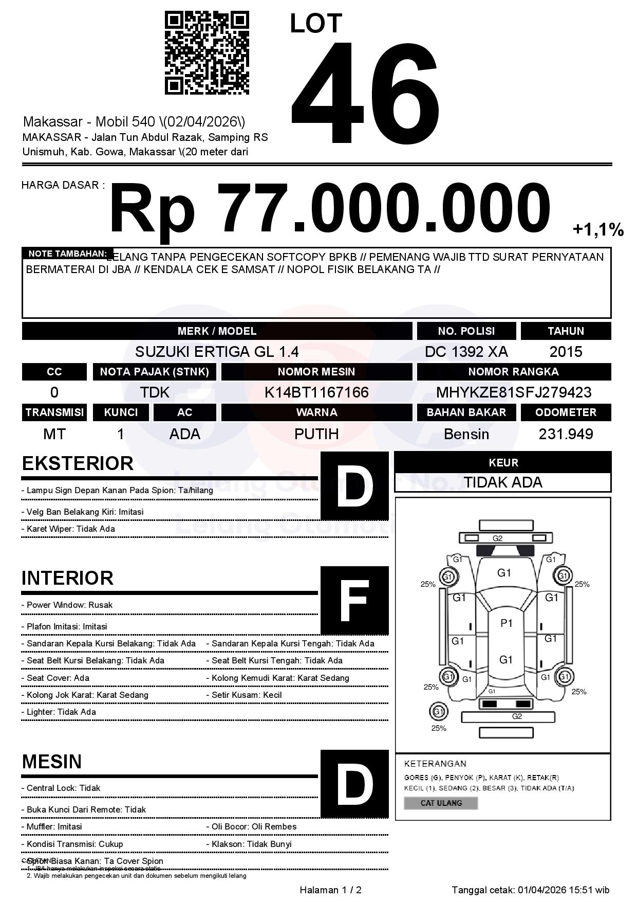 Tanggal Lelang: 02/04/2026 | 13:00 WITA