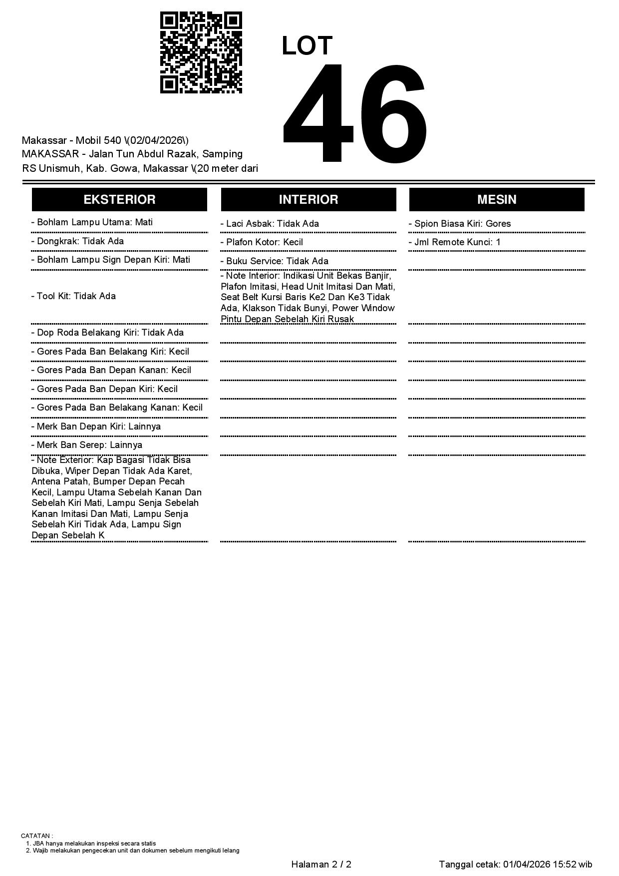 2. Peserta lelang wajib cek unit & dokumen
