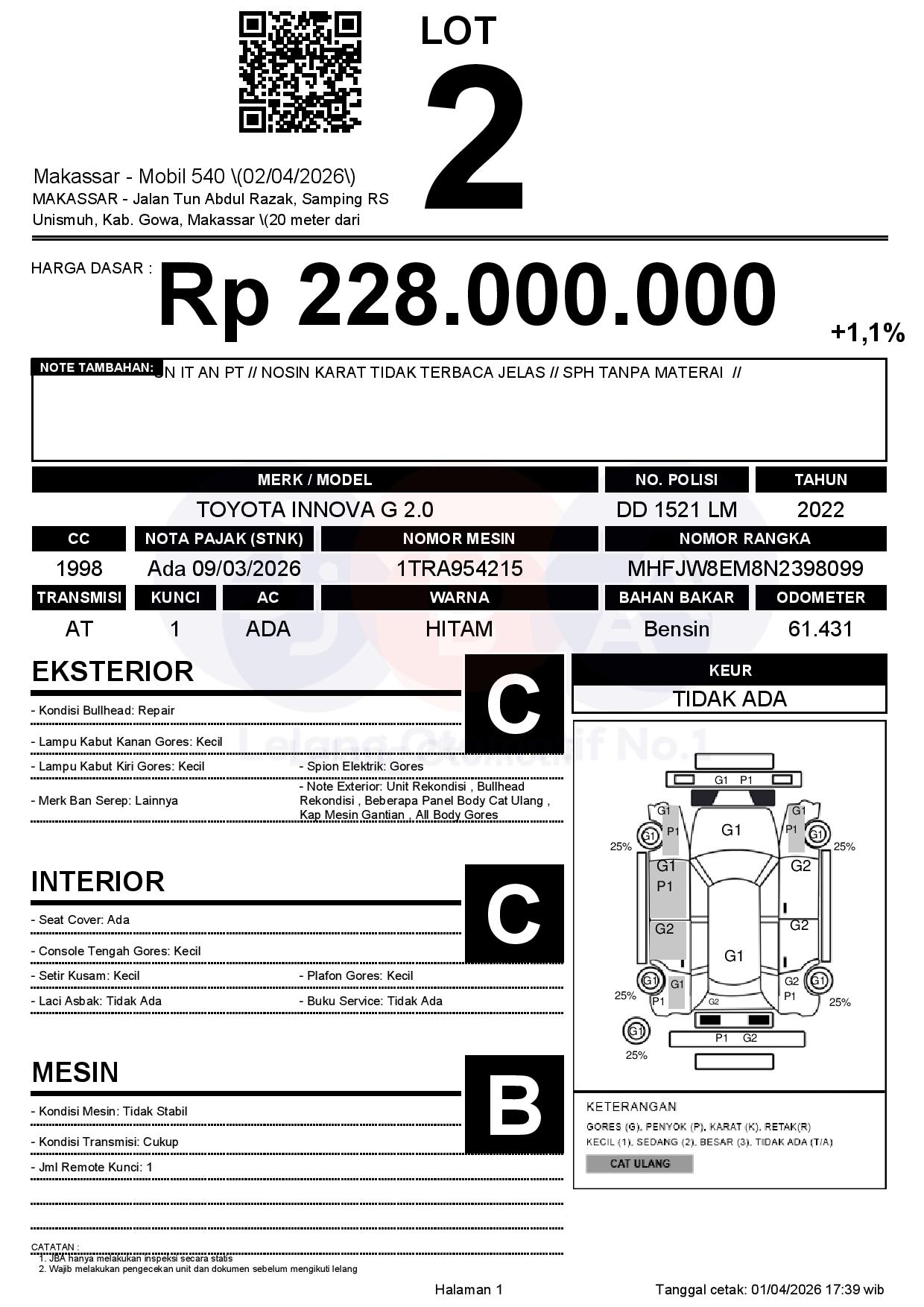Tanggal Lelang: 02/04/2026 | 13:00 WITA