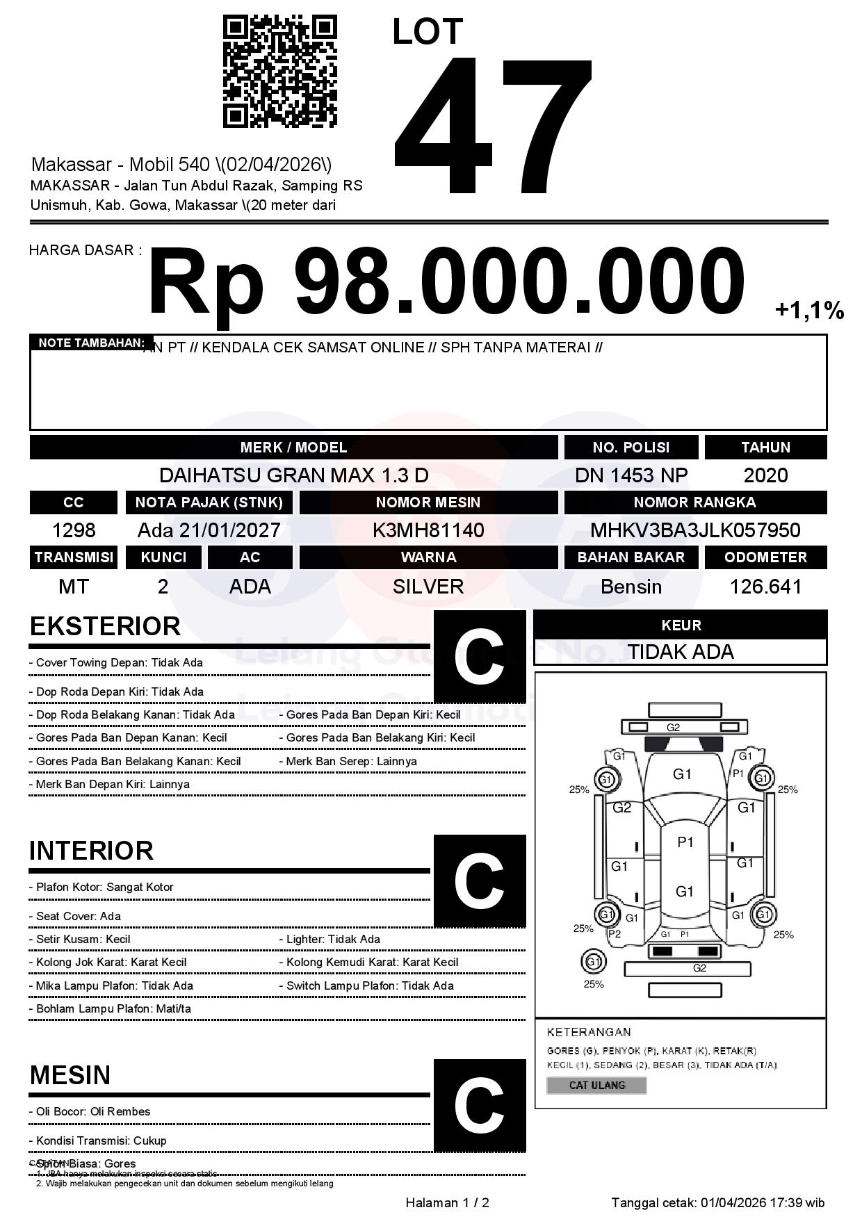 Tanggal Lelang: 02/04/2026 | 13:00 WITA