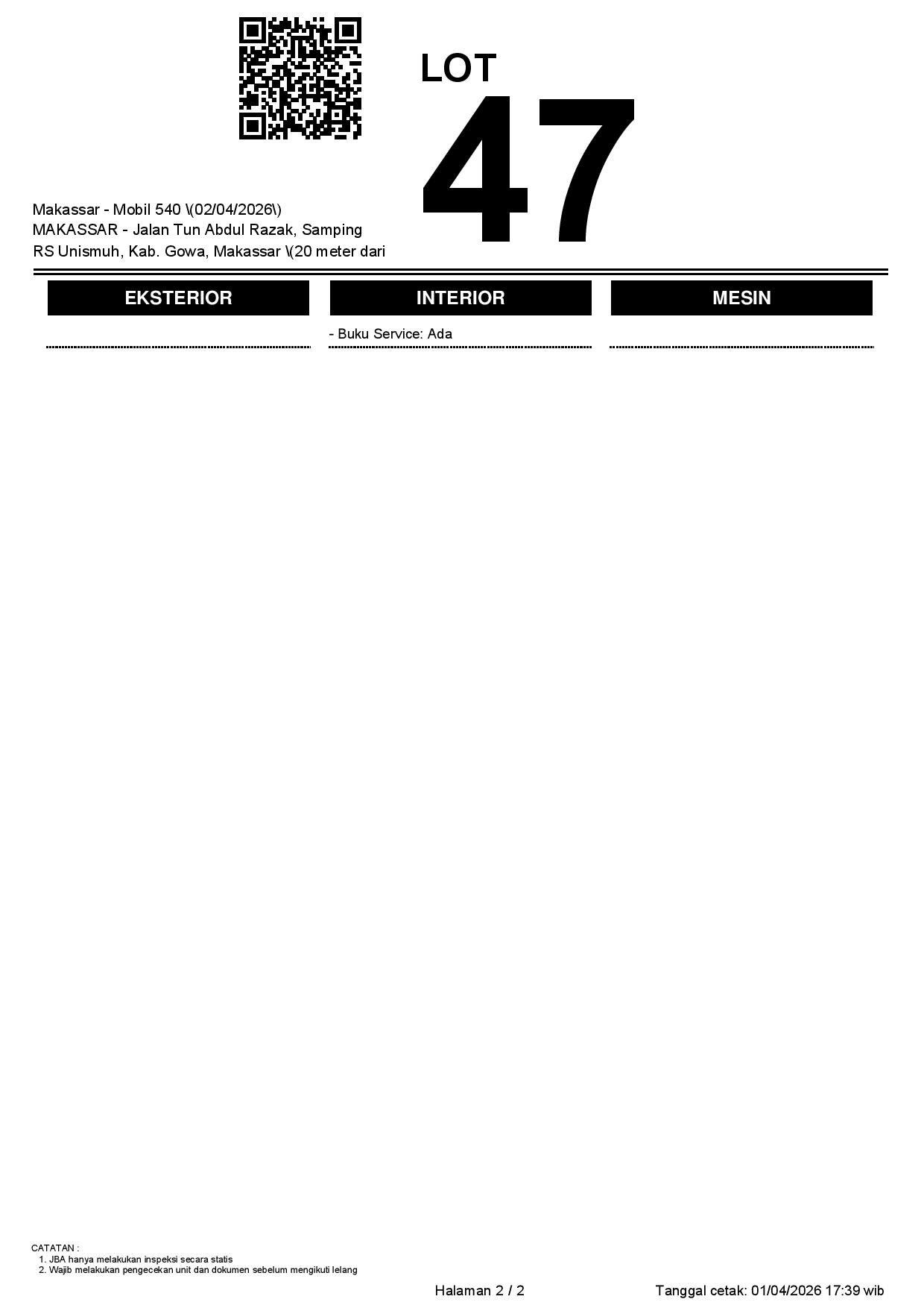 2. Peserta lelang wajib cek unit & dokumen