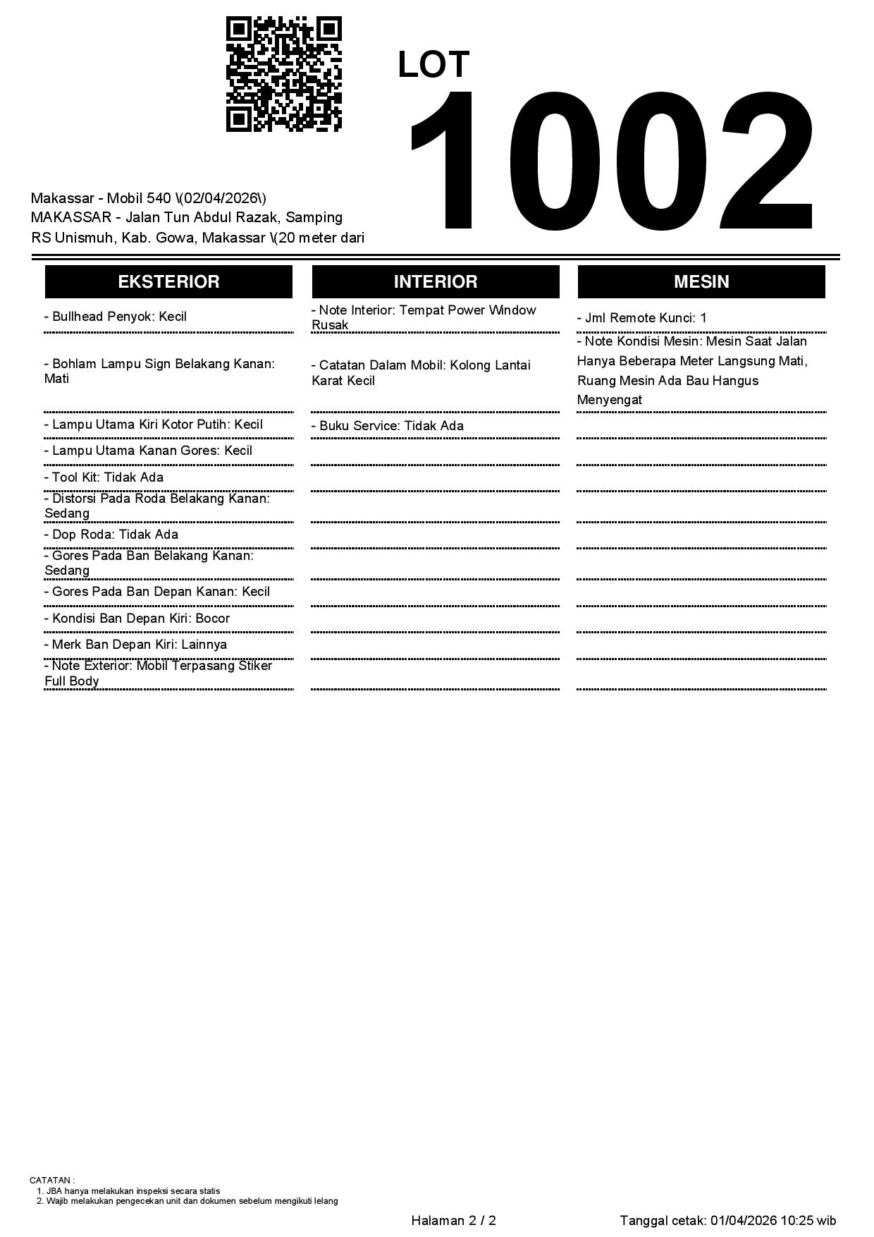 1. Peserta lelang wajib cek unit & dokumen