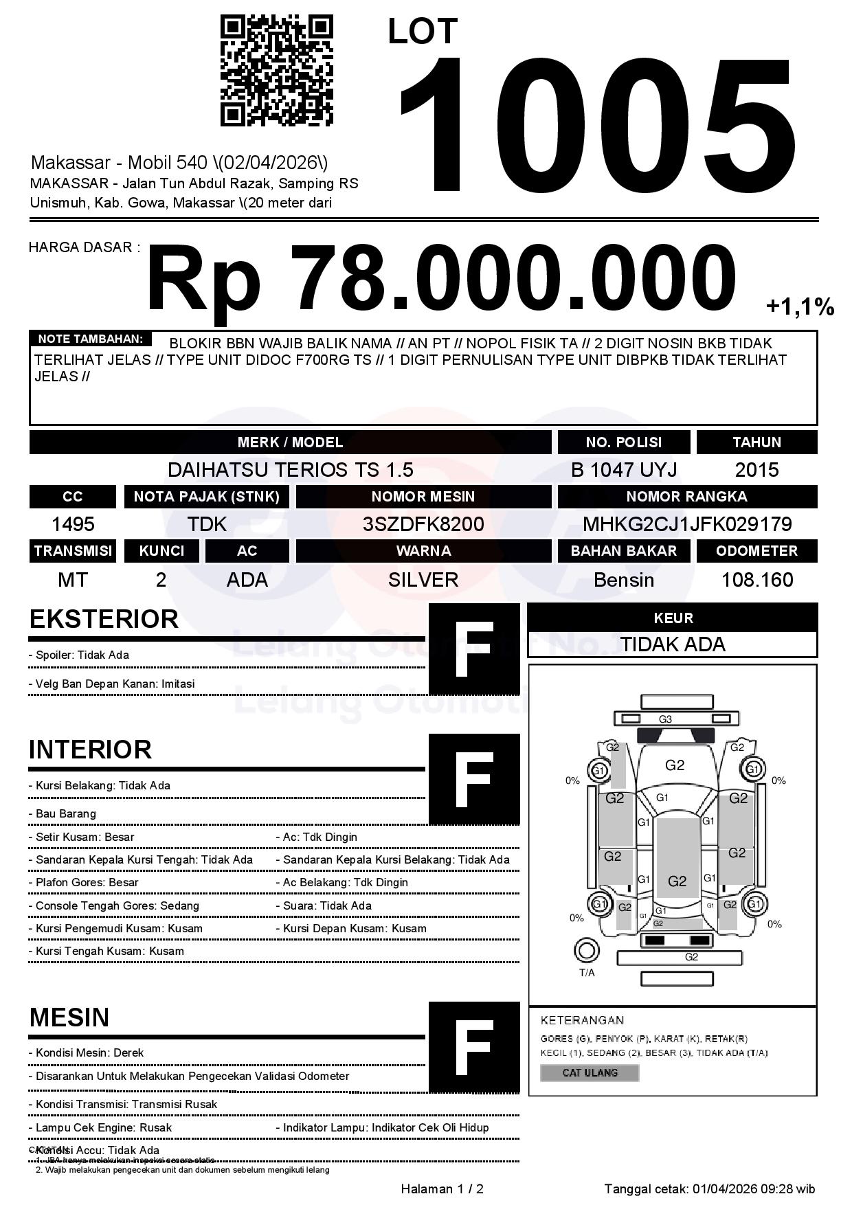 Tanggal Lelang: 02/04/2026 | 13:00 WITA