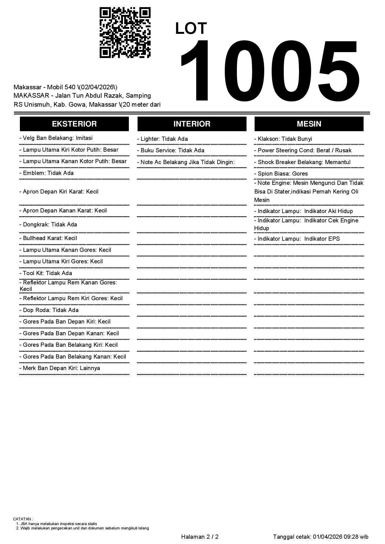 2. Peserta lelang wajib cek unit & dokumen